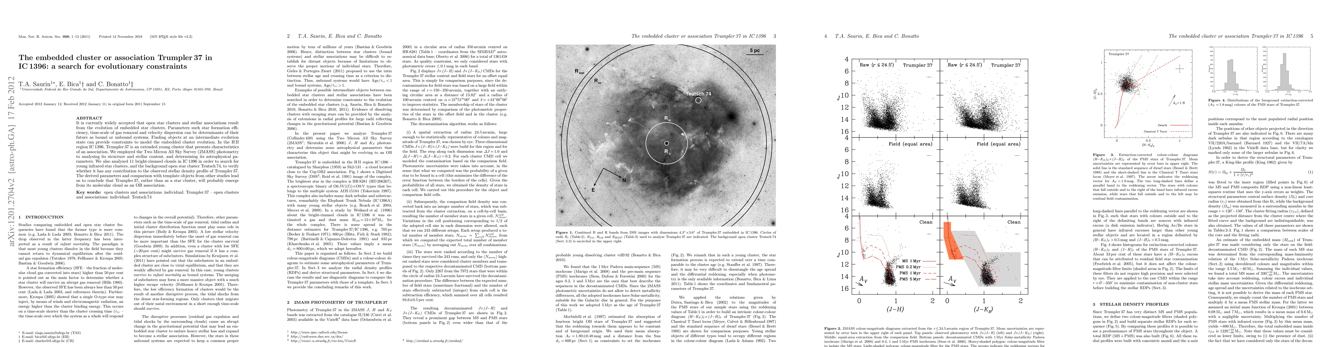 It is currently widely accepted that open star clusters and stellar associations result from the evolution of embedded star clusters. Parameters such star formation efficiency, time-scale of gas removal and velocity dispersion can be determinants of their future as bound or unbound systems. Finding objects at an intermediate evolution state can provide constraints to model the embedded cluster evolution. In the HII region IC1396, Trumpler 37 is an extended young cluster that presents characteristics of an association. We employed the Two Micron All Sky Survey (2MASS) photometry to analysing its structure and stellar content, and determining its astrophysical parameters. We also analysed 11 bright-rimmed clouds in IC1396 in order to search for young infrared star clusters, and the background open star cluster Teutsch 74, to verify whether it has any contribution to the observed stellar density profile of Trumpler 37. The derived parameters and comparison with template objects from other studies lead us to conclude that Trumpler 37, rather than as a star cluster, will probably emerge from its molecular cloud as an OB association.