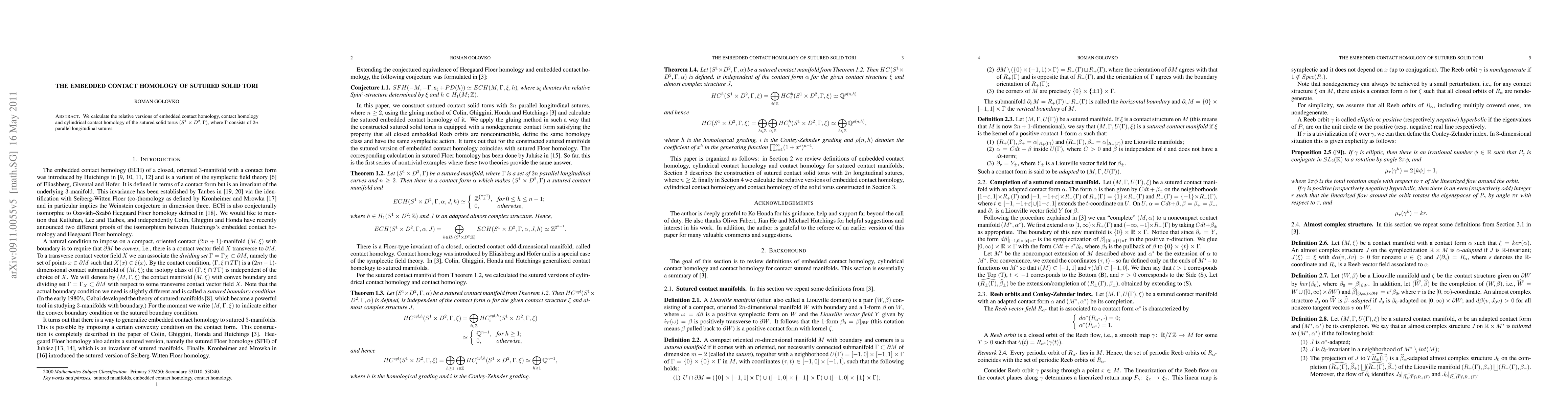 The study computes the relative versions of embedded contact homology, contact homology, and cylindrical contact homology for the sutured solid torus $(S^1\times D^2,\Gamma)$ with $2n$ parallel longitudinal sutures. The results provide deeper insight into the geometric and topological properties of these homology theories.