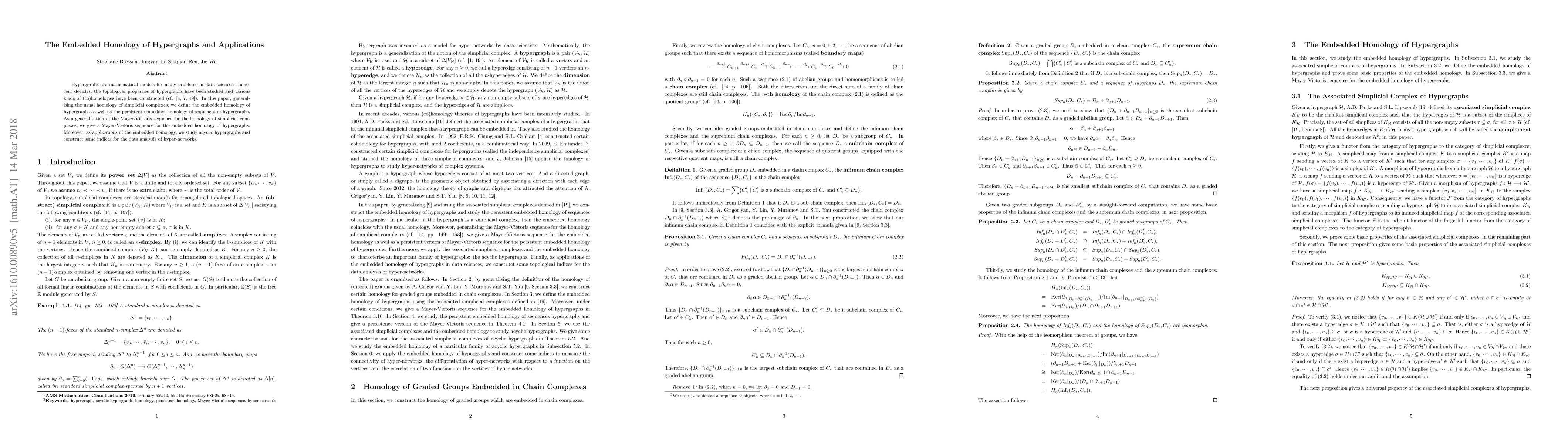 This paper introduces the concept of embedded homology for hypergraphs, generalizing the usual homology of simplicial complexes, and provides a Mayer-Vietoris sequence for this new homology. It also explores applications in data analysis and the study of acyclic hypergraphs for hyper-networks.