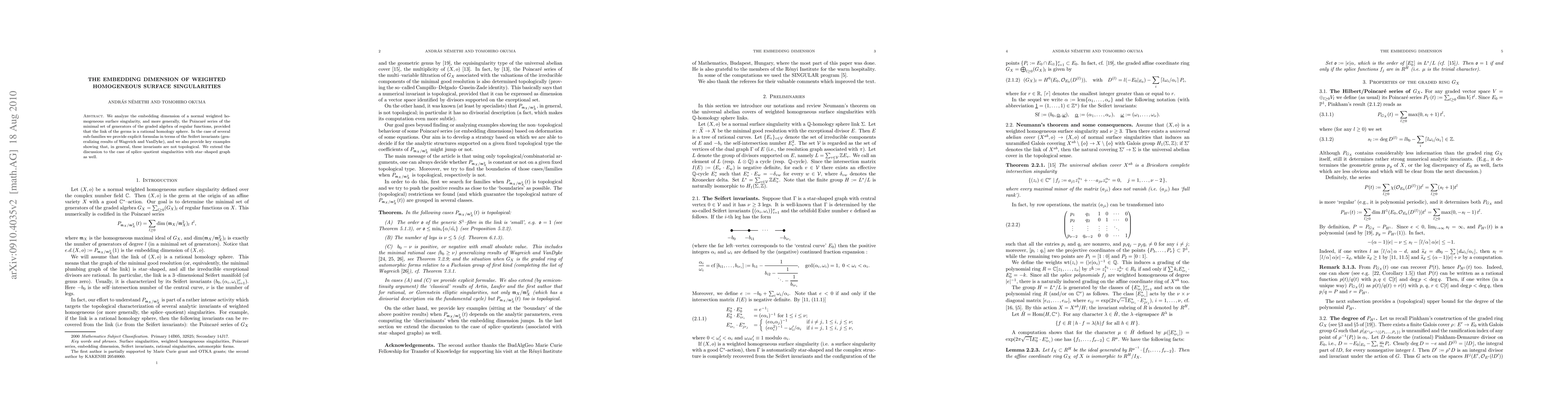 Researchers analyzed the embedding dimension of normal weighted homogeneous surface singularities, providing explicit formulas for certain cases and highlighting the limitations of Seifert invariants in general.