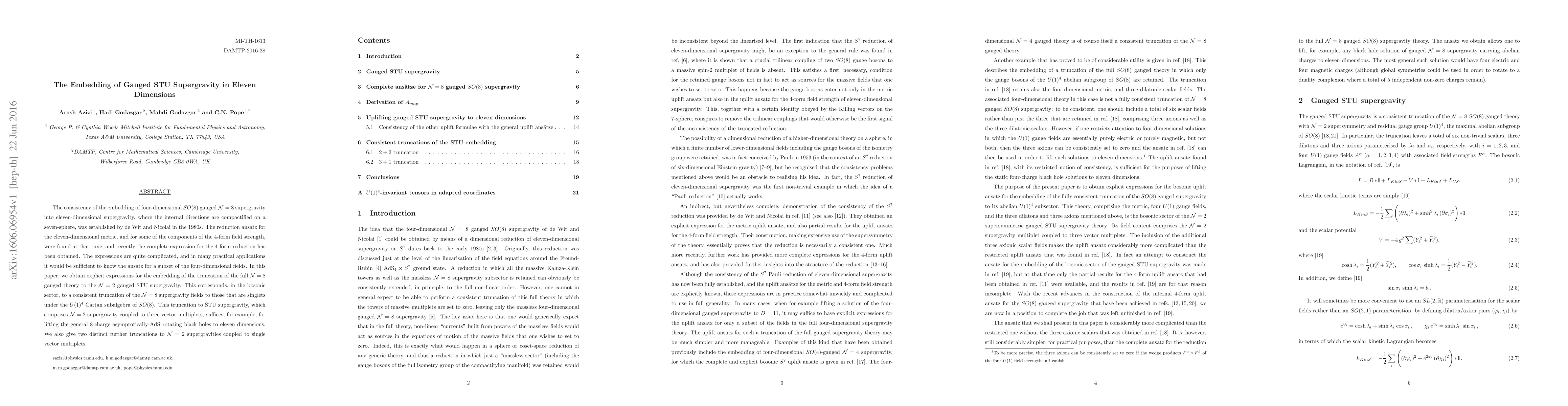 This paper presents explicit expressions for the embedding of a truncated version of four-dimensional N=8 gauged supergravity into eleven-dimensional supergravity, focusing on the N=2 gauged STU supergravity. It provides practical ansätze for the reduction of fields, useful for applications like studying eleven-dimensional black holes.