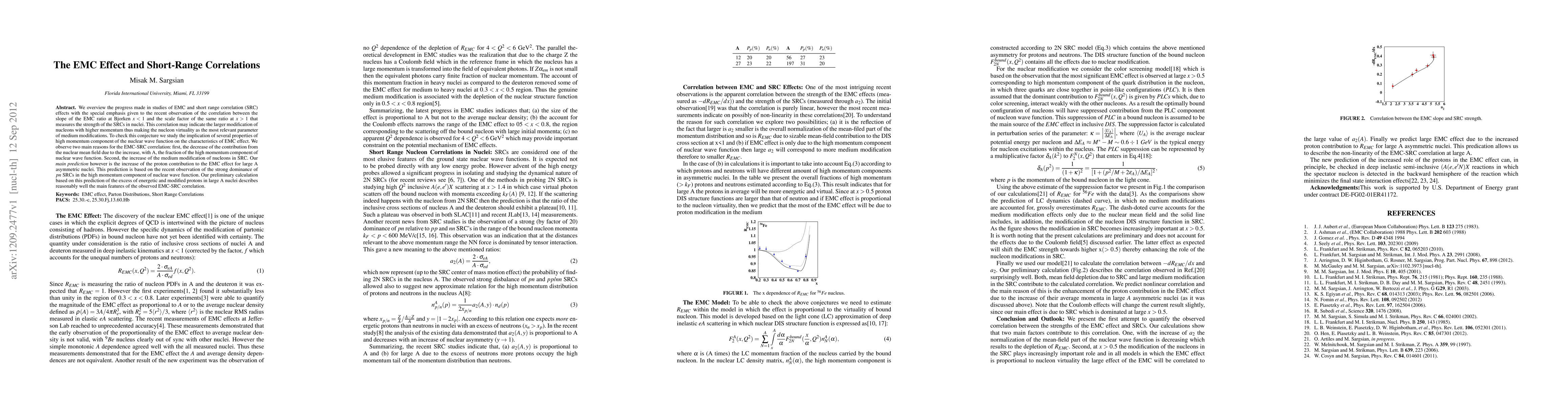 This paper explores the EMC effect and its correlation with short-range correlations (SRC) in nuclei, noting a significant link between the slope of the EMC ratio and the strength of SRCs. The study predicts an increased proton contribution to the EMC effect in large asymmetric nuclei due to the dominance of proton-neutron SRCs in the high momentum component of nuclear wave functions.