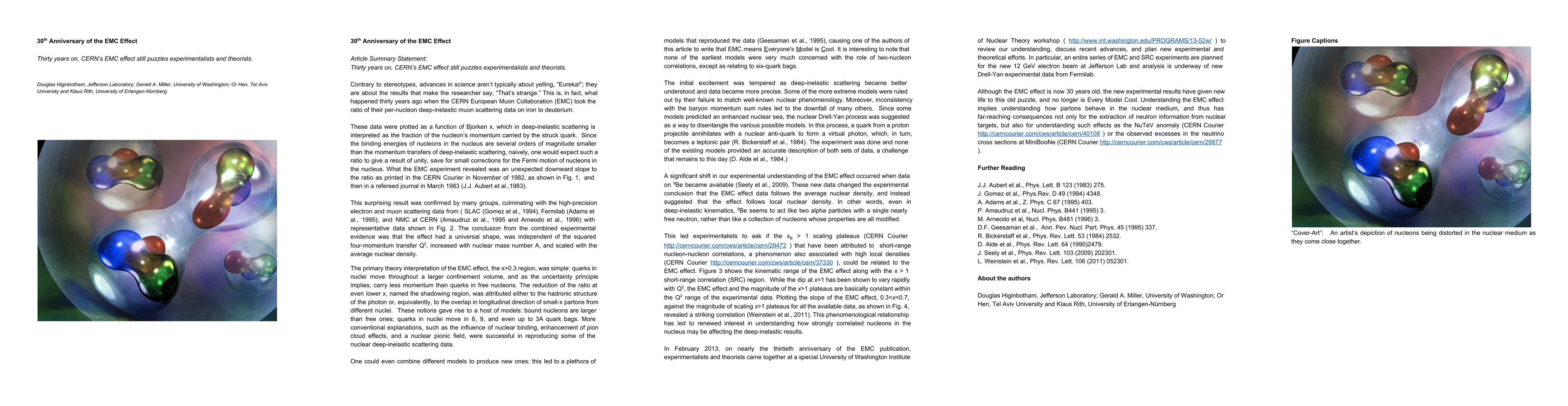 Thirty years after CERN's high-energy muon experiments, an enigmatic effect known as the EMC effect continues to perplex both experimentalists and theorists due to its persistent unexplained nature.