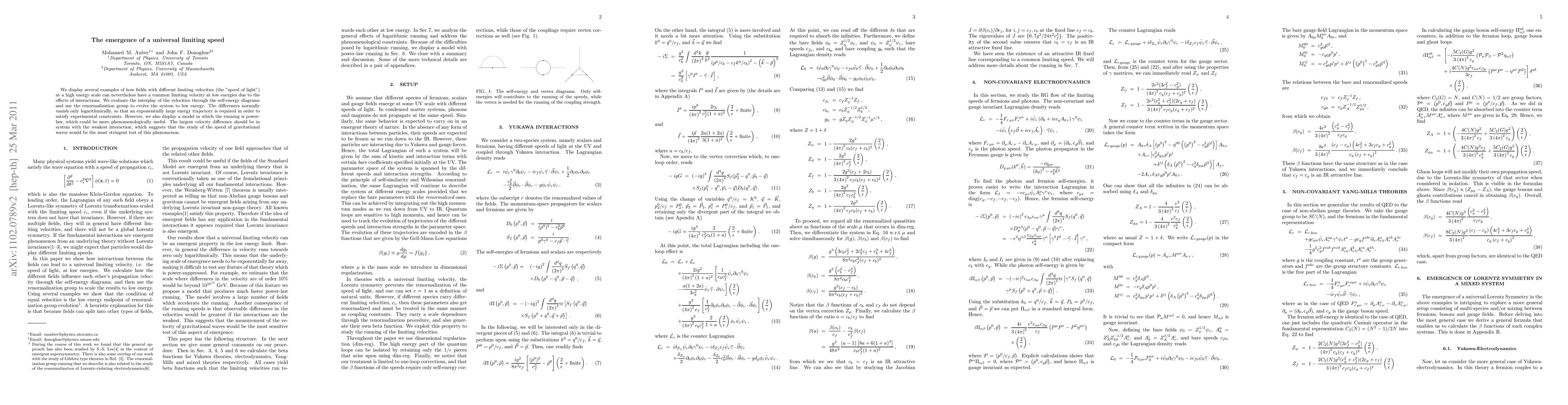 We display several examples of how fields with different limiting velocities (the "speed of light") at a high energy scale can nevertheless have a common limiting velocity at low energies due to the effects of interactions. We evaluate the interplay of the velocities through the self-energy diagrams and use the renormalization group to evolve the system to low energy. The differences normally vanish only logarithmically, so that an exponentially large energy trajectory is required in order to satisfy experimental constraints. However, we also display a model in which the running is power-law, which could be more phenomenologically useful. The largest velocity difference should be in system with the weakest interaction, which suggests that the study of the speed of gravitational waves would be the most stringent test of this phenomenon.
