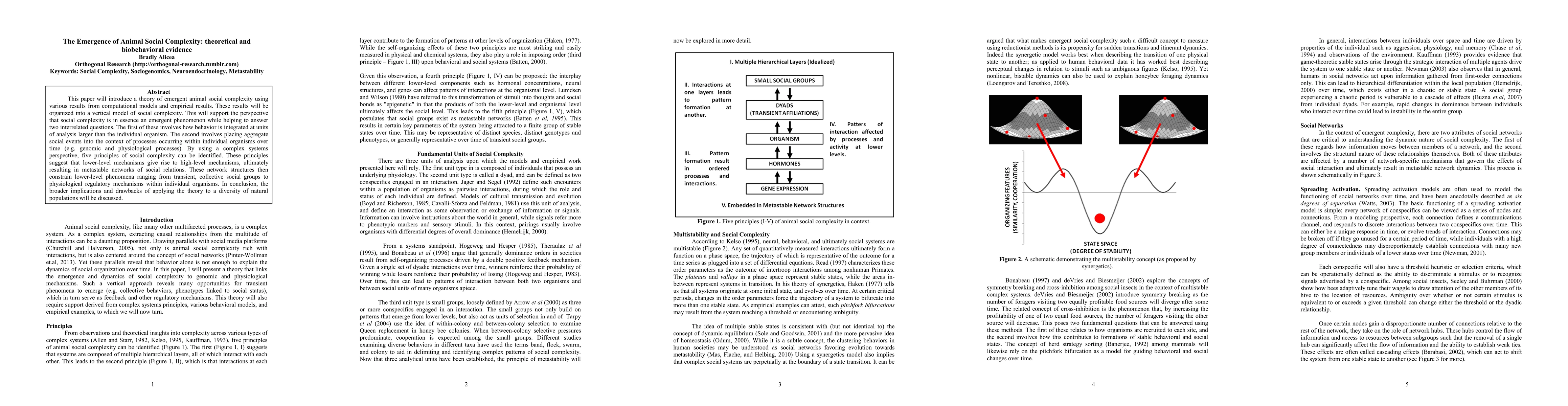 This paper proposes a theory of emergent animal social complexity based on computational models and empirical evidence, suggesting that social complexity arises from lower-level mechanisms forming metastable networks of social relations. It explores how individual organism processes influence aggregate social behaviors and discusses broader implications for diverse natural populations.