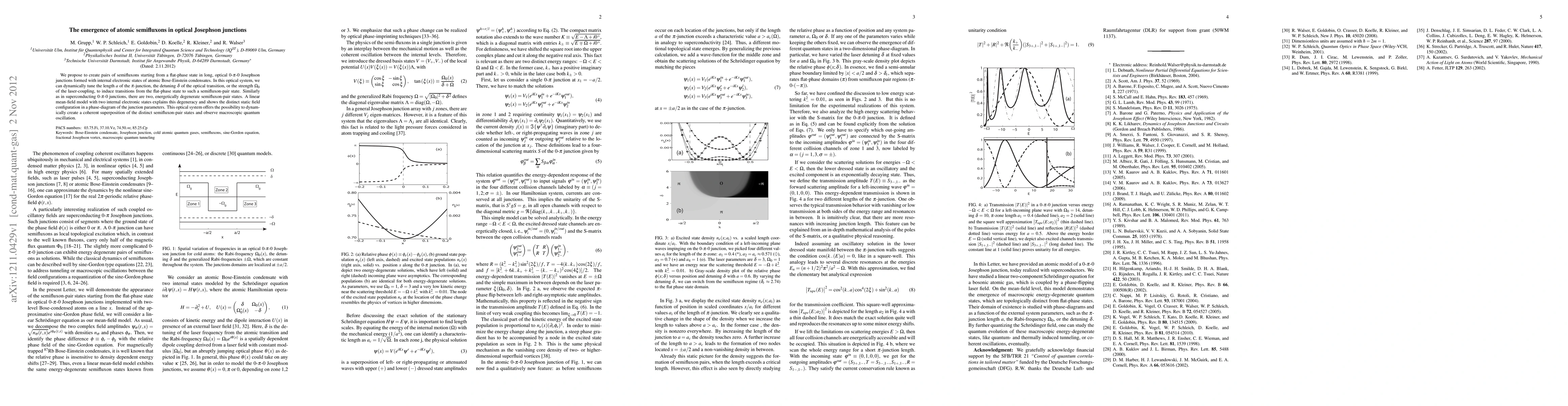 We propose to create pairs of semifluxons starting from a flat-phase state in long, optical 0-pi-0 Josephson junctions formed with internal electronic states of atomic Bose-Einstein condensates. In this optical system, we can dynamically tune the length of the pi-junction, the detuning of the optical transition, or the strength of the laser-coupling, to induce transitions from the flat-phase state to such a semifluxon-pair state. Similarly as in superconducting 0-pi-0 junctions, there are two, energetically degenerate semifluxon-pair states. A linear mean-field model with two internal electronic states explains this degeneracy and shows the distinct static field configuration in a phase-diagram of the junction parameters. This optical system offers the possibility to dynamically create a coherent superposition of the distinct semifluxon-pair states and observe macroscopic quantum oscillation.