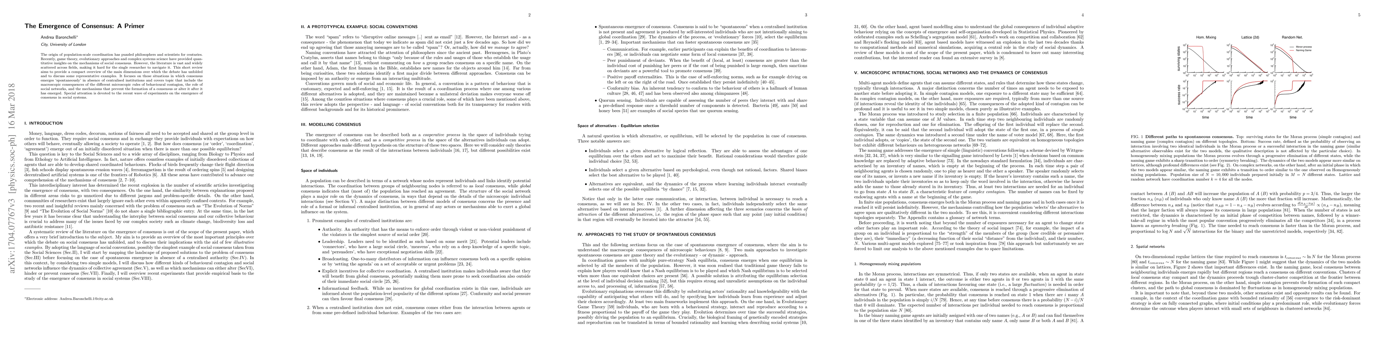 This paper offers a concise overview of the mechanisms behind spontaneous social consensus, drawing from game theory, evolutionary approaches, and complex systems science. It highlights key topics like behavioral contagion rules, social networks' role, and consensus-altering mechanisms, with a focus on recent experimental studies.