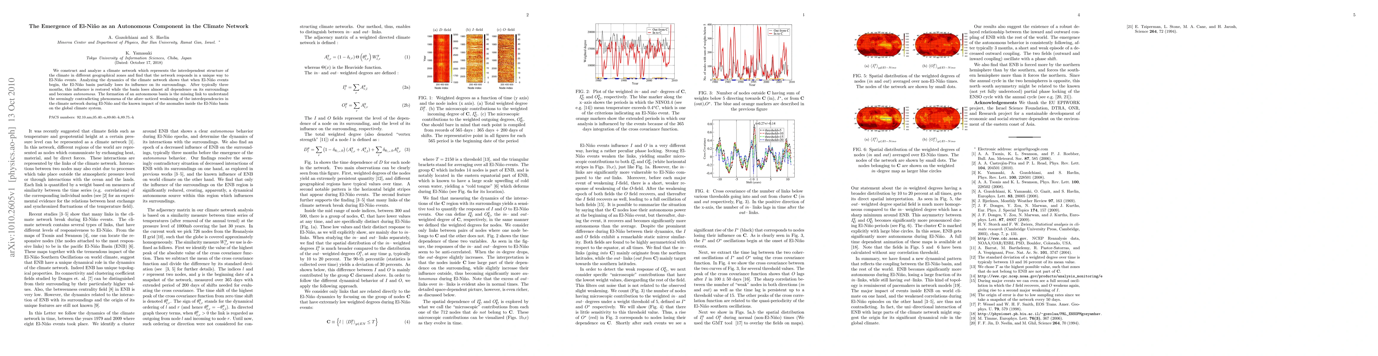 We construct and analyze a climate network which represents the interdependent structure of the climate in different geographical zones and find that the network responds in a unique way to El-Ni\~{n}o events. Analyzing the dynamics of the climate network shows that when El-Ni\~{n}o events begin, the El-Ni\~{n}o basin partially loses its influence on its surroundings. After typically three months, this influence is restored while the basin loses almost all dependence on its surroundings and becomes \textit{autonomous}. The formation of an autonomous basin is the missing link to understand the seemingly contradicting phenomena of the afore--noticed weakening of the interdependencies in the climate network during El-Ni\~{n}o and the known impact of the anomalies inside the El-Ni\~{n}o basin on the global climate system.