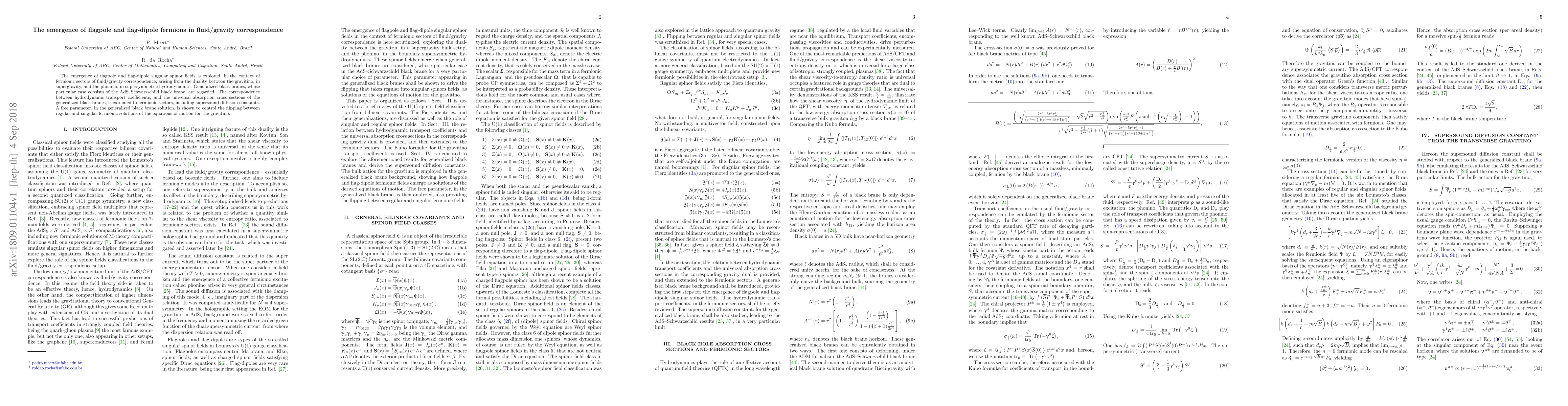 The emergence of flagpole and flag-dipole singular spinor fields is explored, in the context of fermionic sectors of fluid/gravity correspondence, arising from the duality between the gravitino, in supergravity, and the phonino, in supersymmetric hydrodynamics. Generalized black branes, whose particular case consists of the AdS--Schwarzschild black brane, are regarded. The correspondence between hydrodynamic transport coefficients, and the universal absorption cross sections of the generalized black branes, is extended to fermionic sectors, including supersound diffusion constants. A free parameter, in the generalized black brane solution, is shown to control the flipping between regular and singular fermionic solutions of the equations of motion for the gravitino.