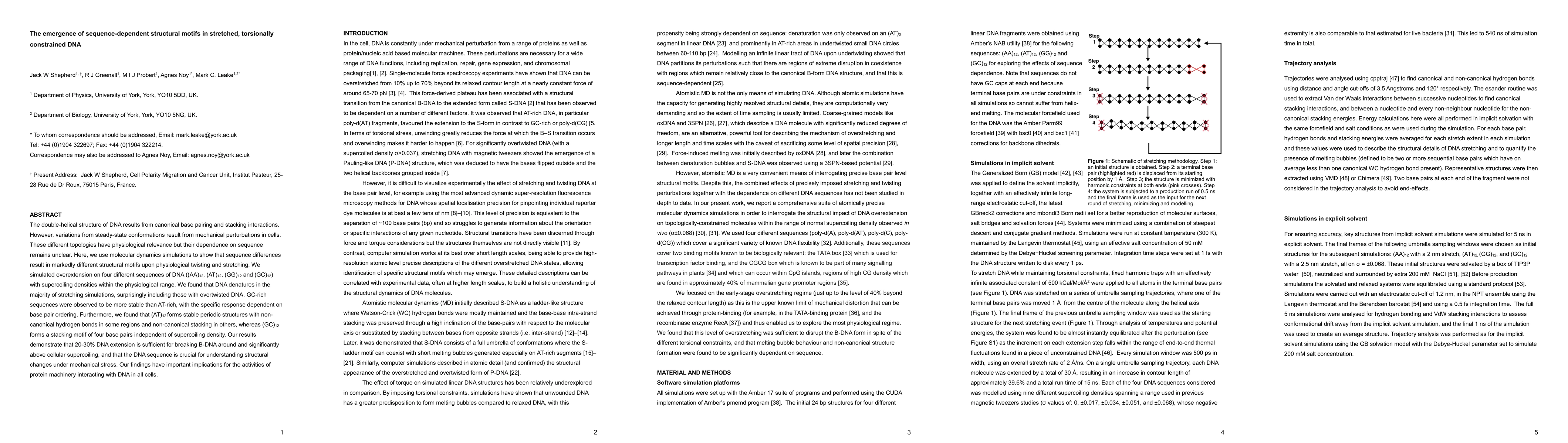 This study reveals that DNA sequence significantly influences structural motifs under mechanical stress, using molecular dynamics simulations of four sequences under physiological stretching and twisting. GC-rich sequences proved more stable than AT-rich ones, with unique structural responses depending on base pair ordering, highlighting the importance of sequence in DNA's mechanical behavior.