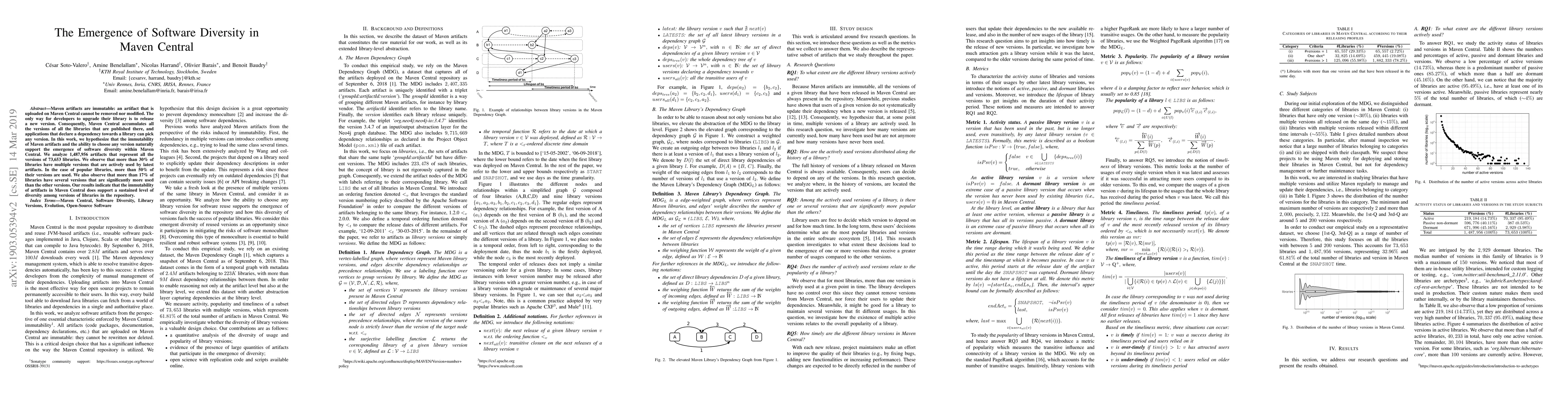 This study examines the impact of Maven Central's immutability on software diversity, finding that over 30% of libraries have multiple actively used versions, with popular libraries showing over 50% of their versions in use. The research concludes that Maven Central's policy supports a sustained level of diversity among library versions.