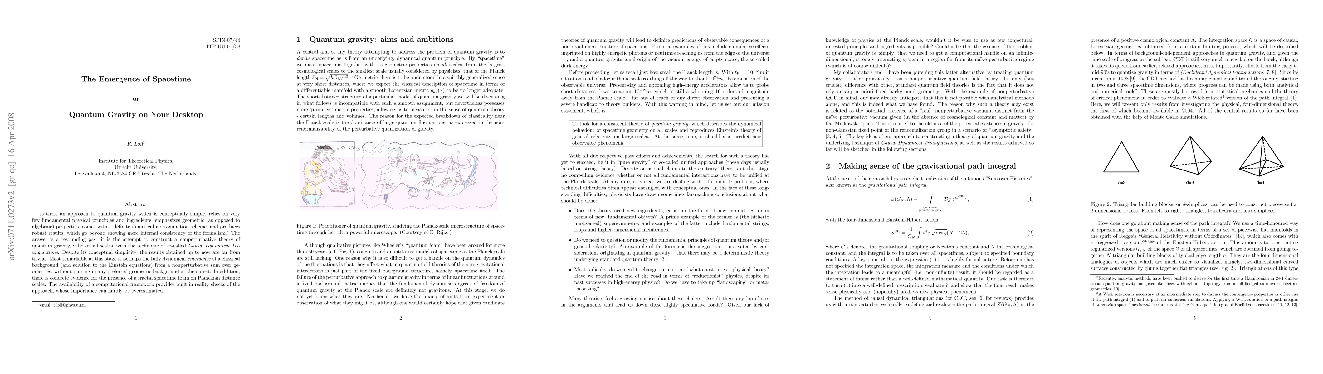Is there an approach to quantum gravity which is conceptually simple, relies on very few fundamental physical principles and ingredients, emphasizes geometric (as opposed to algebraic) properties, comes with a definite numerical approximation scheme, and produces robust results, which go beyond showing mere internal consistency of the formalism? The answer is a resounding yes: it is the attempt to construct a nonperturbative theory of quantum gravity, valid on all scales, with the technique of so-called Causal Dynamical Triangulations. Despite its conceptual simplicity, the results obtained up to now are far from trivial. Most remarkable at this stage is perhaps the fully dynamical emergence of a classical background (and solution to the Einstein equations) from a nonperturbative sum over geometries, without putting in any preferred geometric background at the outset. In addition, there is concrete evidence for the presence of a fractal spacetime foam on Planckian distance scales. The availability of a computational framework provides built-in reality checks of the approach, whose importance can hardly be overestimated.