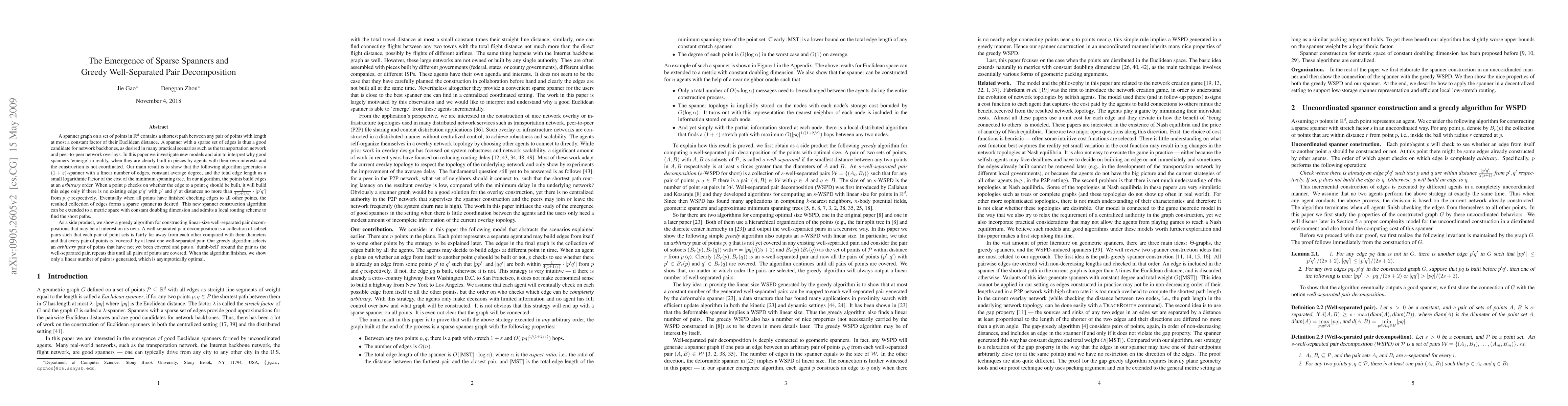 This paper explores the emergence of sparse spanner graphs through an uncoordinated edge construction process, demonstrating that a $(1 + \eps)$-spanner with linear edges and a small logarithmic factor edge length can be achieved. Additionally, it presents a greedy algorithm for constructing optimal well-separated pair decompositions.