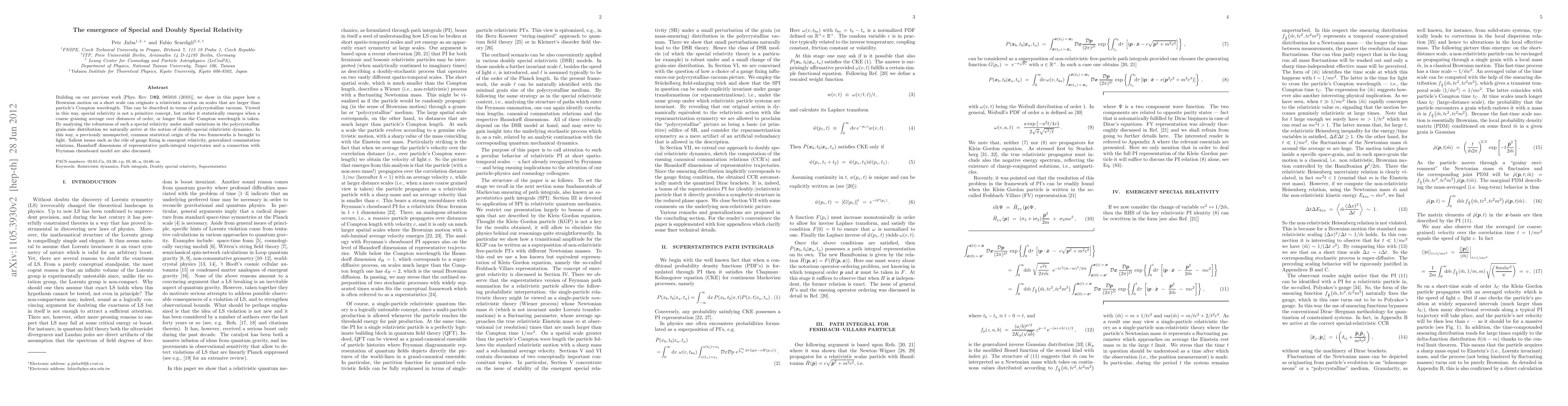 Building on our previous work [Phys.Rev.D82,085016(2010)], we show in this paper how a Brownian motion on a short scale can originate a relativistic motion on scales that are larger than particle's Compton wavelength. This can be described in terms of polycrystalline vacuum. Viewed in this way, special relativity is not a primitive concept, but rather it statistically emerges when a coarse graining average over distances of order, or longer than the Compton wavelength is taken. By analyzing the robustness of such a special relativity under small variations in the polycrystalline grain-size distribution we naturally arrive at the notion of doubly-special relativistic dynamics. In this way, a previously unsuspected, common statistical origin of the two frameworks is brought to light. Salient issues such as the role of gauge fixing in emergent relativity, generalized commutation relations, Hausdorff dimensions of representative path-integral trajectories and a connection with Feynman chessboard model are also discussed.