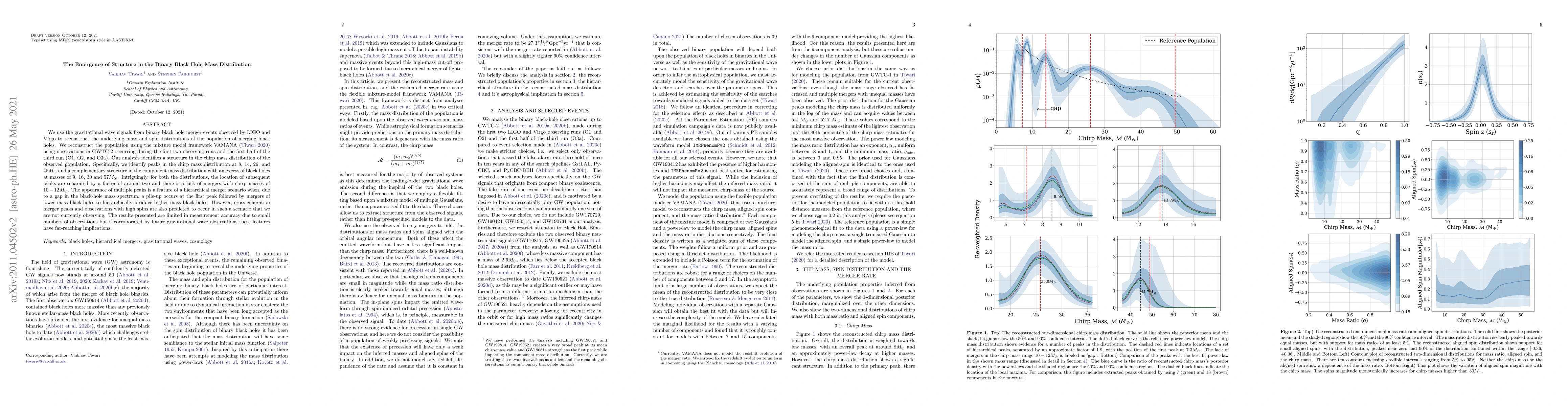We use the gravitational wave signals from binary black hole merger events observed by LIGO and Virgo to reconstruct the underlying mass and spin distributions of the population of merging black holes. We reconstruct the population using the mixture model framework VAMANA (Tiwari 2020) using observations in GWTC-2 occurring during the first two observing runs and the first half of the third run (O1, O2, and O3a). Our analysis identifies a structure in the chirp mass distribution of the observed population. Specifically, we identify peaks in the chirp mass distribution at 8, 14, 26, and 45 M and a complementary structure in the component mass distribution with an excess of black holes at masses of 9, 16, 30 and 57 M_. Intriguingly, for both the distributions, the location of subsequent peaks are separated by a factor of around two and there is a lack of mergers with chirp masses of 10-12 M. The appearance of multiple peaks is a feature of a hierarchical merger scenario when, due to a gap in the black-hole mass spectrum, a pile-up occurs at the first peak followed by mergers of lower mass black-holes to hierarchically produce higher mass black-holes. However, cross-generation merger peaks and observations with high spins are also predicted to occur in such a scenario that we are not currently observing. The results presented are limited in measurement accuracy due to small numbers of observations but if corroborated by future gravitational wave observations these features have far-reaching implications.