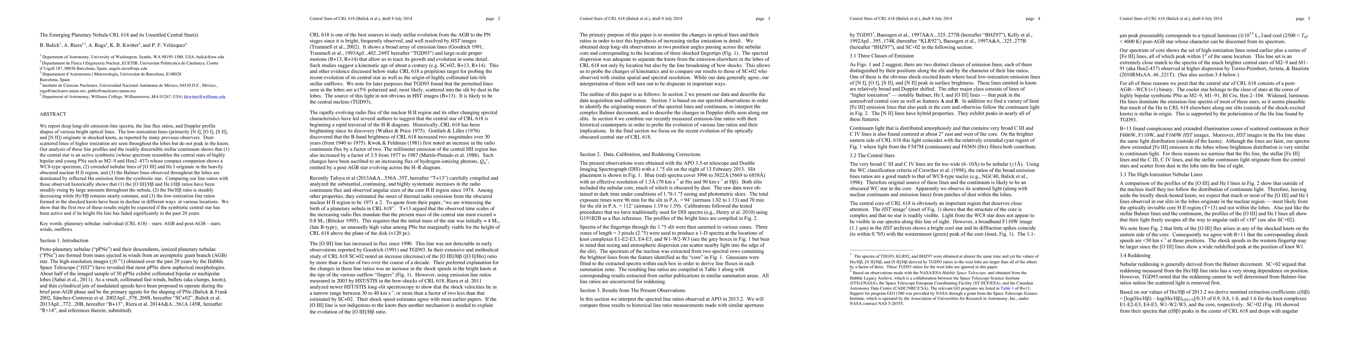 We report deep long-slit emission-line spectra, the line flux ratios, and Doppler profile shapes of various bright optical lines. The low-ionization lines (primarily [N I], [O I], [S II], and [N II]) originate in shocked knots, as reported by many previous observers. Dust-scattered lines of higher ionization are seen throughout the lobes but do not peak in the knots. Our analysis of these line profiles and the readily discernible stellar continuum shows that (1) the central star is an active symbiotic (whose spectrum resembles the central stars of highly bipolar and young PNe such as M2-9 and Hen2-437) whose compact companion shows a WC8-type spectrum, (2) extended nebular lines of [O III] and He I originate in the heavily obscured nuclear H II region, and (3) the Balmer lines observed throughout the lobes are dominated by reflected H{\alpha} emission from the symbiotic star. Comparing our line ratios with those observed historically shows that (1) the [O III]/H\b{eta} and He I/H\b{eta} ratios have been steadily rising by large amounts throughout the nebula, (2) the H{\alpha}/H\b{eta} ratio is steadily decreasing while H{\gamma}/H\b{eta} remains nearly constant, and (3) the low-ionization line ratios formed in the shocked knots have been in decline in different ways at various locations. We show that the first two of these results might be expected if the symbiotic central star has been active and if its bright H{\alpha} line has faded significantly in the past 20 years.