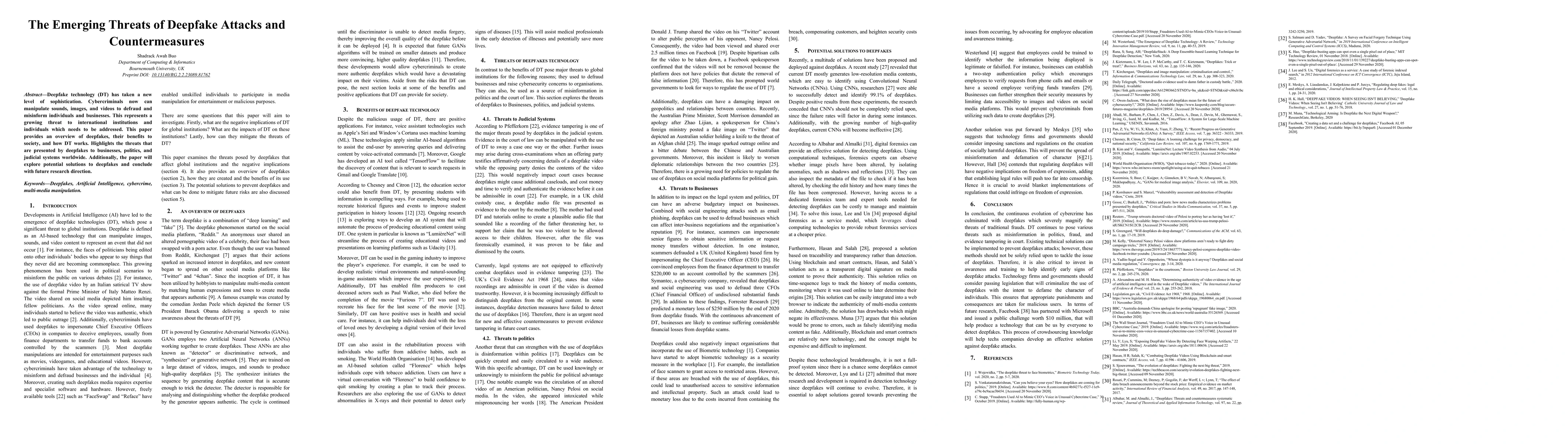 Deepfake technology poses a growing threat to individuals and businesses worldwide, allowing for sophisticated manipulation of sounds, images, and videos. This paper explores the threats and potential solutions to deepfakes, highlighting their impact on politics, judicial systems, and global institutions.