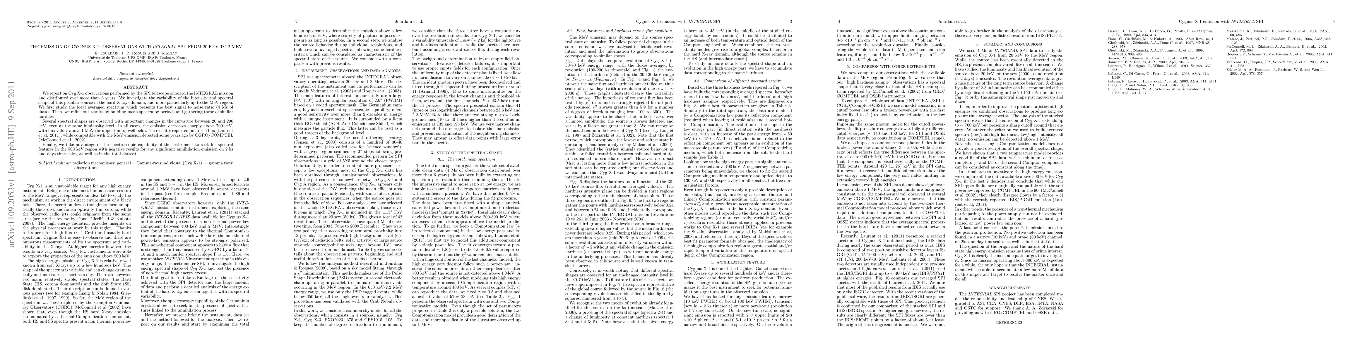 We report on Cyg X-1 observations performed by the SPI telescope onboard the INTEGRAL mission and distributed over more than 6 years. We investigate the variability of the intensity and spectral shape of this peculiar source in the hard X-rays domain, and more particularly up to the MeV region. We first study the total averaged spectrum which presents the best signal to noise ratio (4 Ms of data). Then, we refine our results by building mean spectra by periods and gathering those of similar hardness. Several spectral shapes are observed with important changes in the curvature between 20 and 200 keV, even at the same luminosity level. In all cases, the emission decreases sharply above 700 keV, with flux values above 1 MeV (or upper limits) well below the recently reported polarised flux (Laurent et al. 2011), while compatible with the MeV emission detected some years ago by CGRO/COMPTEL (McConnell et al., 2002). Finally, we take advantage of the spectroscopic capability of the instrument to seek for spectral features in the 500 keV region with negative results for any significant annihilation emission on 2 ks and days timescales, as well as in the total dataset.