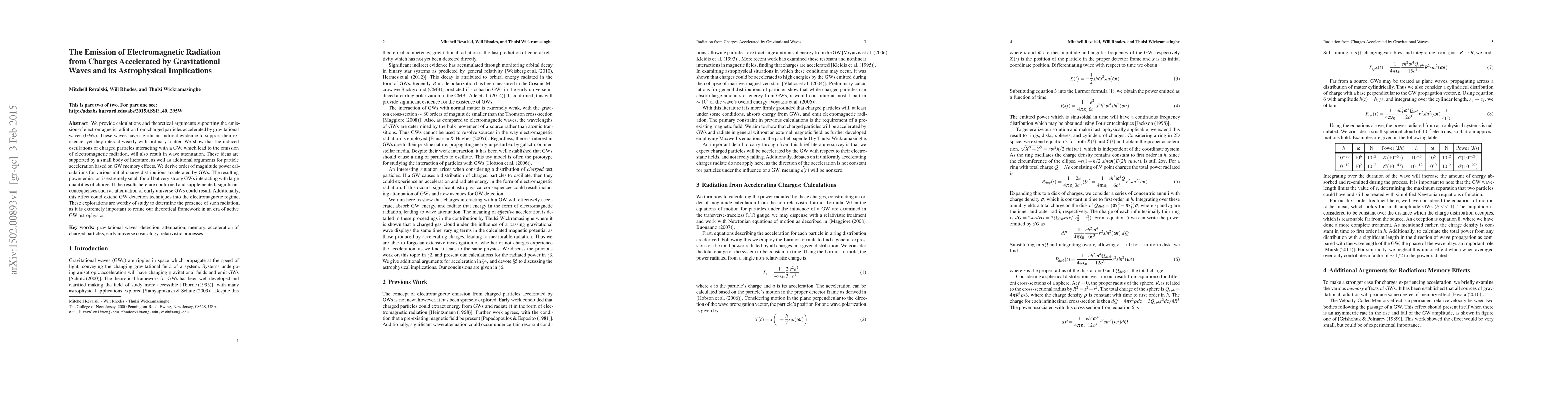 This paper explores the emission of electromagnetic radiation from charged particles accelerated by gravitational waves, demonstrating that such interactions can lead to both radiation emission and wave attenuation. The study suggests that while the effect is currently negligible, it could have significant implications for early universe gravitational wave studies and extend detection methods into the electromagnetic spectrum.