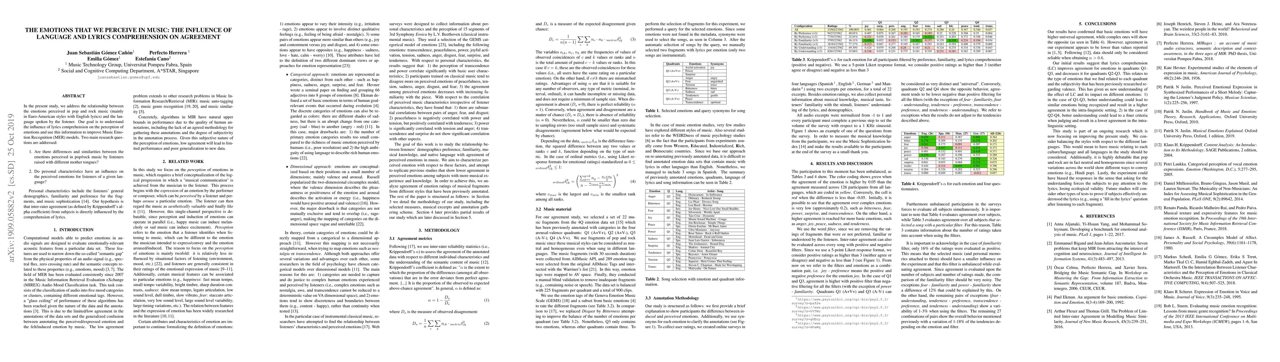 This study investigates how language and lyrics comprehension affect the perception of emotions in pop and rock music, focusing on Euro-American styles with English lyrics. It aims to determine if listeners' mother tongues influence their emotional interpretations and if personal characteristics impact these perceptions to enhance Music Emotion Recognition models.