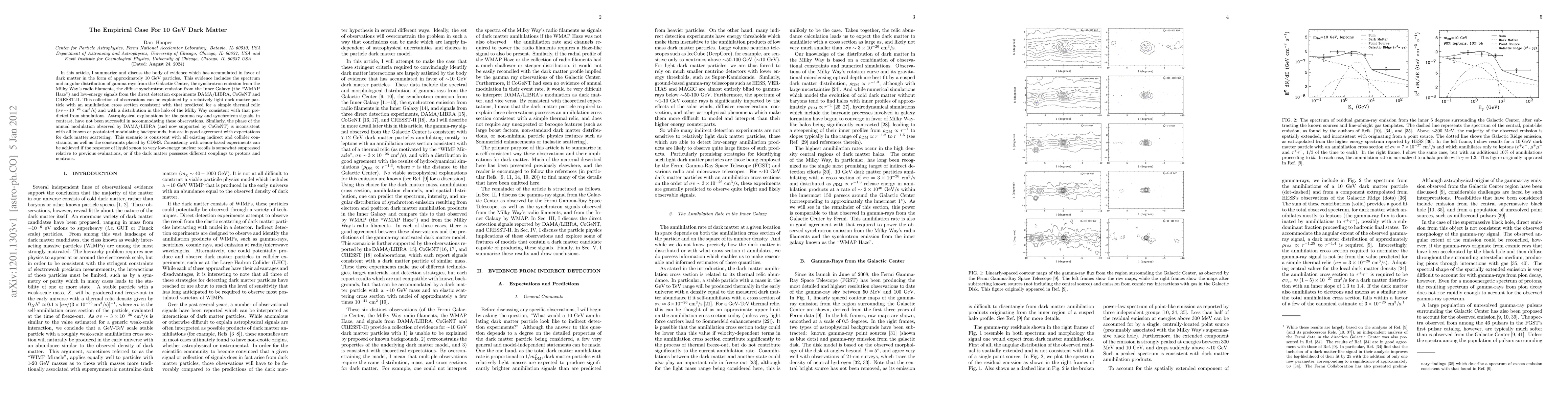 In this article, I summarize and discuss the body of evidence which has accumulated in favor of dark matter in the form of approximately 10 GeV particles. This evidence includes the spectrum and angular distribution of gamma rays from the Galactic Center, the synchrotron emission from the Milky Way's radio filaments, the diffuse synchrotron emission from the Inner Galaxy (the "WMAP Haze") and low-energy signals from the direct detection experiments DAMA/LIBRA, CoGeNT and CRESST-II. This collection of observations can be explained by a relatively light dark matter particle with an annihilation cross section consistent with that predicted for a simple thermal relic (sigma v ~ 10^-26 cm^3/s) and with a distribution in the halo of the Milky Way consistent with that predicted from simulations. Astrophysical explanations for the gamma ray and synchrotron signals, in contrast, have not been successful in accommodating these observations. Similarly, the phase of the annual modulation observed by DAMA/LIBRA (and now supported by CoGeNT) is inconsistent with all known or postulated modulating backgrounds, but are in good agreement with expectations for dark matter scattering. This scenario is consistent with all existing indirect and collider constraints, as well as the constraints placed by CDMS. Consistency with xenon-based experiments can be achieved if the response of liquid xenon to very low-energy nuclear recoils is somewhat suppressed relative to previous evaluations, or if the dark matter possesses different couplings to protons and neutrons.