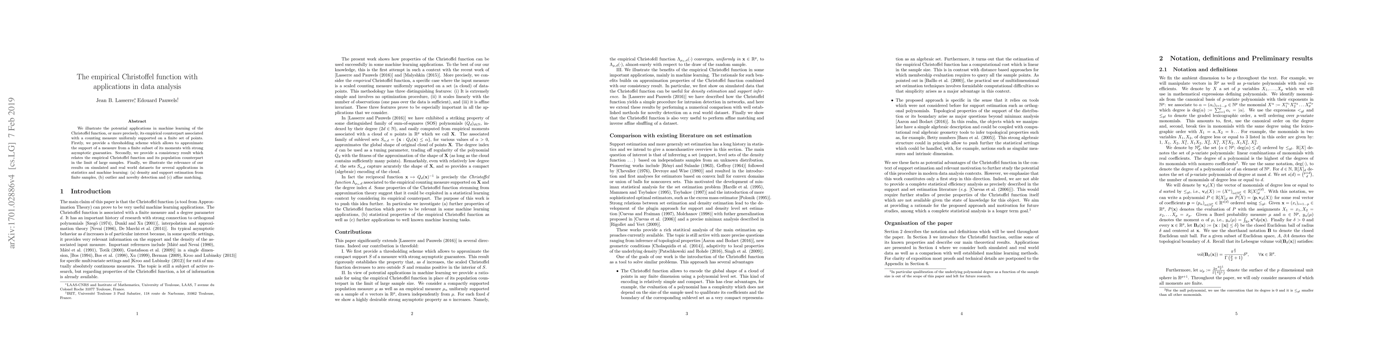 A research paper explores the application of Christoffel functions in data analysis, providing a thresholding scheme to approximate measure support from finite samples and establishing consistency between empirical and population counterparts.
