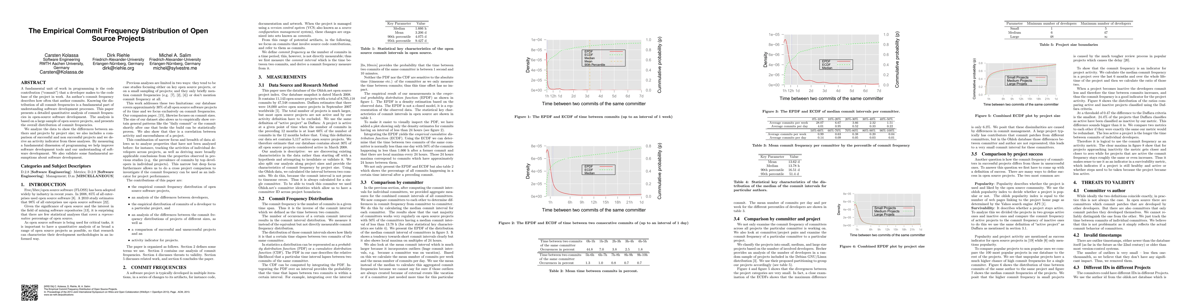 This paper quantitatively analyzes commit frequencies in open-source projects to understand software development processes, revealing differences in author and project-based activity levels. It identifies an activity indicator and validates assumptions about software development, aiming to improve development tools and understanding.