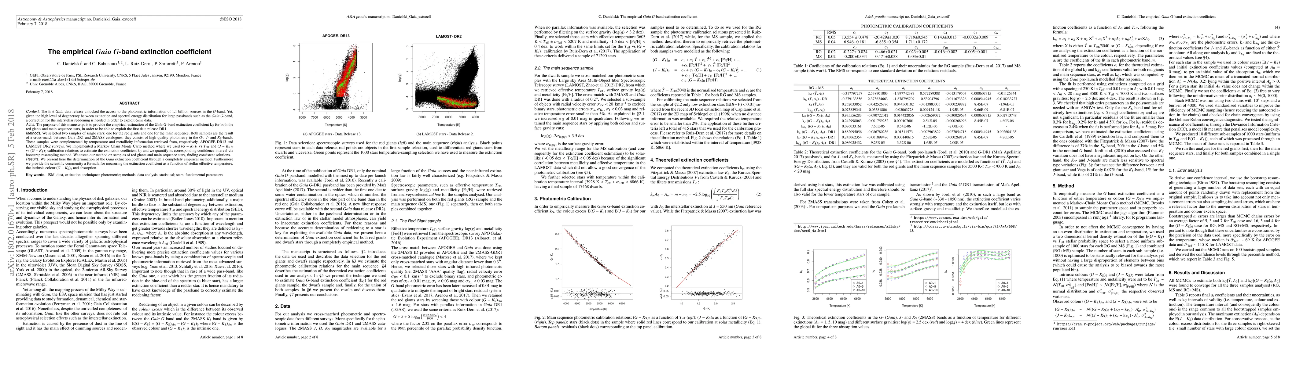 This paper provides an empirical estimation of the Gaia G-band extinction coefficient for red giants and main sequence stars, enabling accurate correction for interstellar reddening in Gaia data.