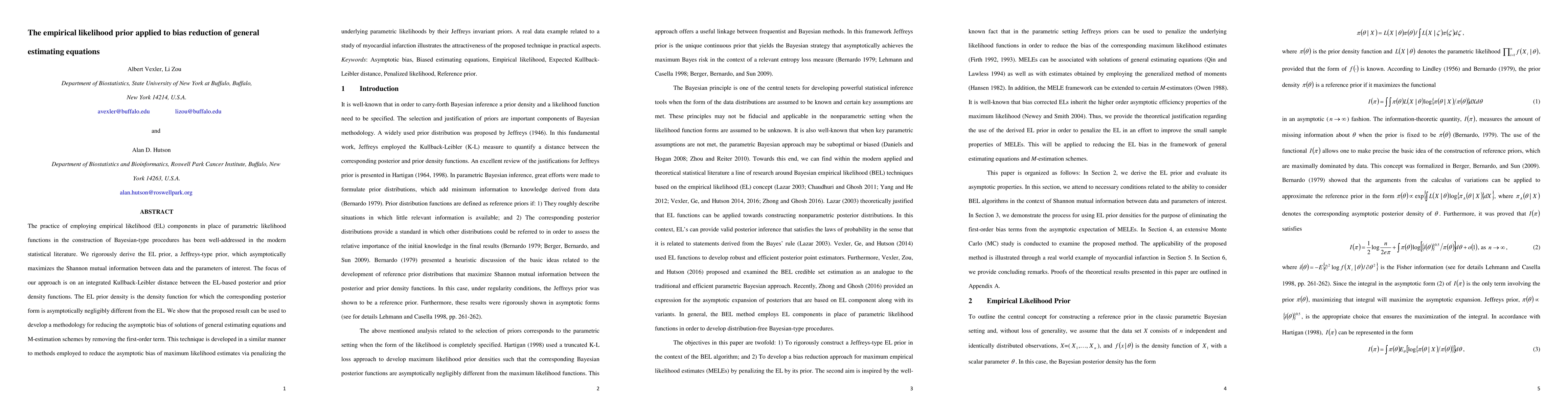 This paper develops an empirical likelihood prior to reduce the asymptotic bias of general estimating equations and M-estimation schemes by minimizing the Kullback-Leibler distance between the EL-based posterior and prior, analogous to the use of Jeffreys priors in penalized likelihood methods. The technique is demonstrated with a real-world example related to myocardial infarction studies.