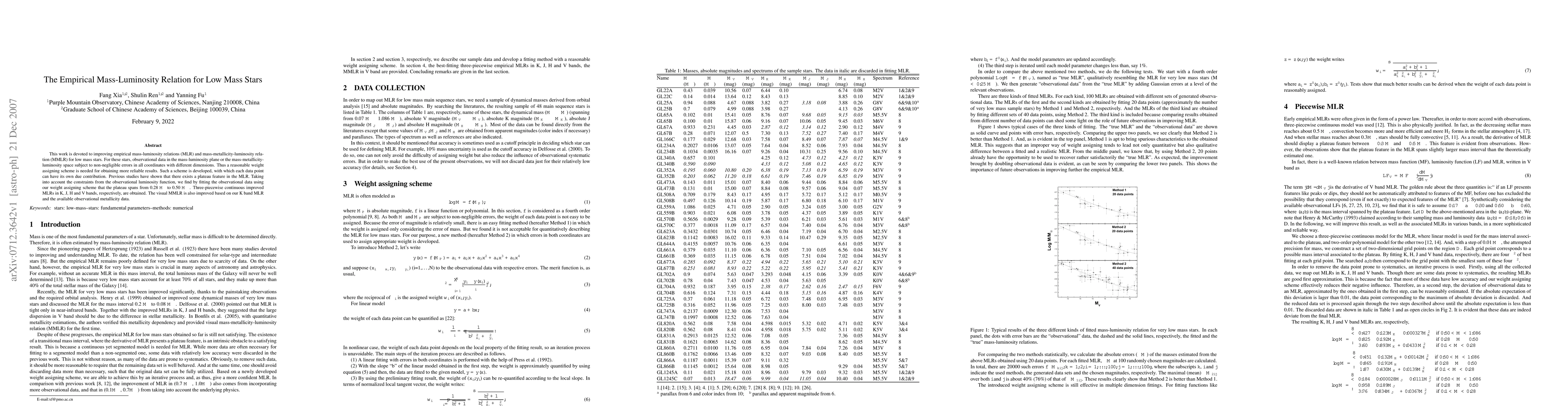 This paper develops a new weight assigning scheme to improve empirical mass-luminosity relations for low mass stars, revealing a plateau from 0.28 to 0.50 solar mass, and provides three-piecewise continuous relations in K, J, H, and V bands, along with an improved mass-metallicity-luminosity relation.