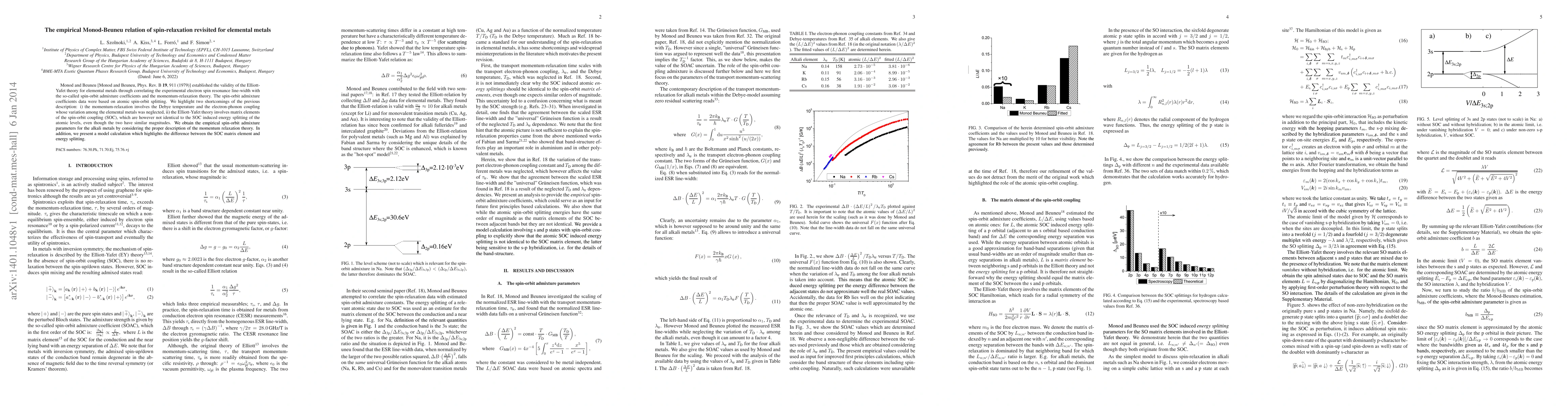 Monod and Beuneu [Monod and Beuneu, Phys. Rev. B 19, 911 (1979)] established the validity of the Elliott-Yafet theory for elemental metals through correlating the experimental electron spin resonance line-width with the so-called spin-orbit admixture coefficients and the momentum-relaxation theory. The spin-orbit admixture coefficients data were based on atomic spin-orbit splitting. We highlight two shortcomings of the previous description: i) the momentum-relaxation involves the Debye temperature and the electron-phonon coupling whose variation among the elemental metals was neglected, ii) the Elliott-Yafet theory involves matrix elements of the spin-orbit coupling (SOC), which are however not identical to the SOC induced energy splitting of the atomic levels, even though the two have similar magnitudes. We obtain the empirical spin-orbit admixture parameters for the alkali metals by considering the proper description of the momentum relaxation theory. In addition, we present a model calculation which highlights the difference between the SOC matrix element and energy splitting.