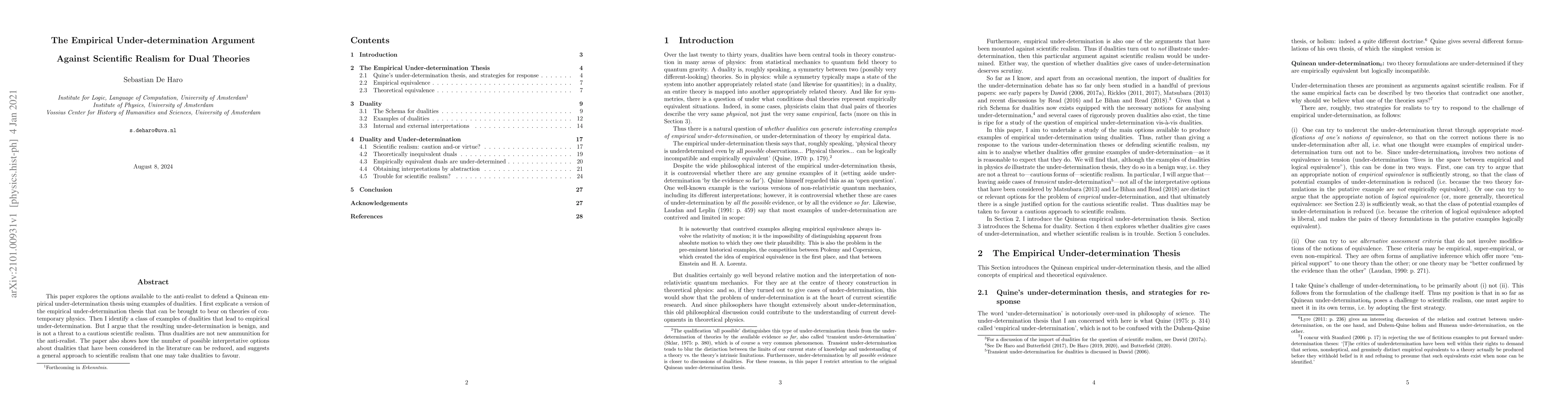 This paper explores the options available to the anti-realist to defend a Quinean empirical under-determination thesis using examples of dualities. I first explicate a version of the empirical under-determination thesis that can be brought to bear on theories of contemporary physics. Then I identify a class of examples of dualities that lead to empirical under-determination. But I argue that the resulting under-determination is benign, and is not a threat to a cautious scientific realism. Thus dualities are not new ammunition for the anti-realist. The paper also shows how the number of possible interpretative options about dualities that have been considered in the literature can be reduced, and suggests a general approach to scientific realism that one may take dualities to favour.