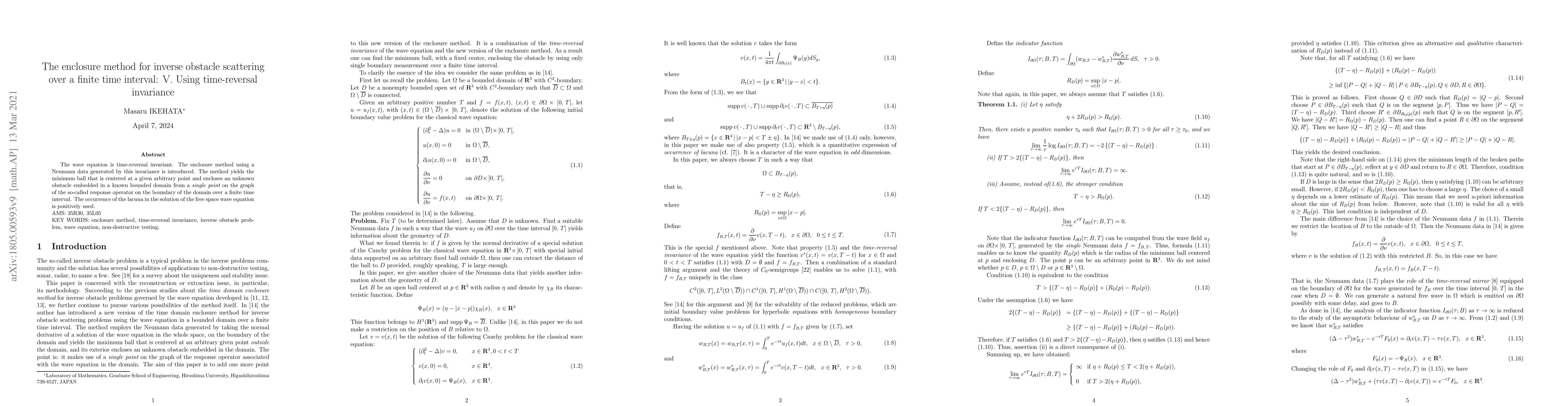This paper introduces an enclosure method leveraging time-reversal invariance for inverse obstacle scattering, determining the minimum ball enclosing an unknown obstacle using Neumann data over a finite time interval. The method exploits the lacuna in the free space wave equation solution to achieve this.