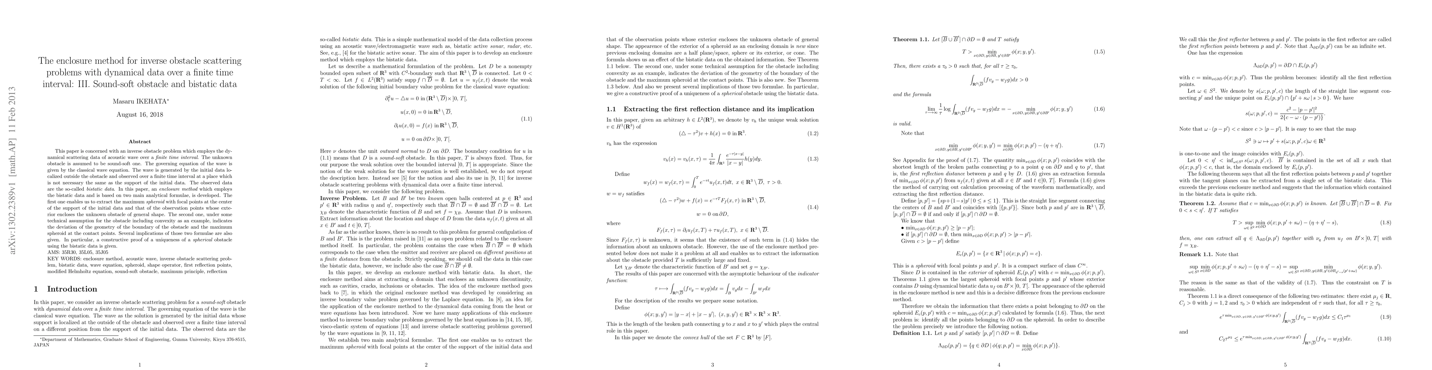 This paper develops an enclosure method for solving inverse obstacle scattering problems using dynamical acoustic wave data over a finite time interval. It focuses on sound-soft obstacles and utilizes bistatic data, providing analytical formulae to determine the shape and uniqueness of the obstacle.