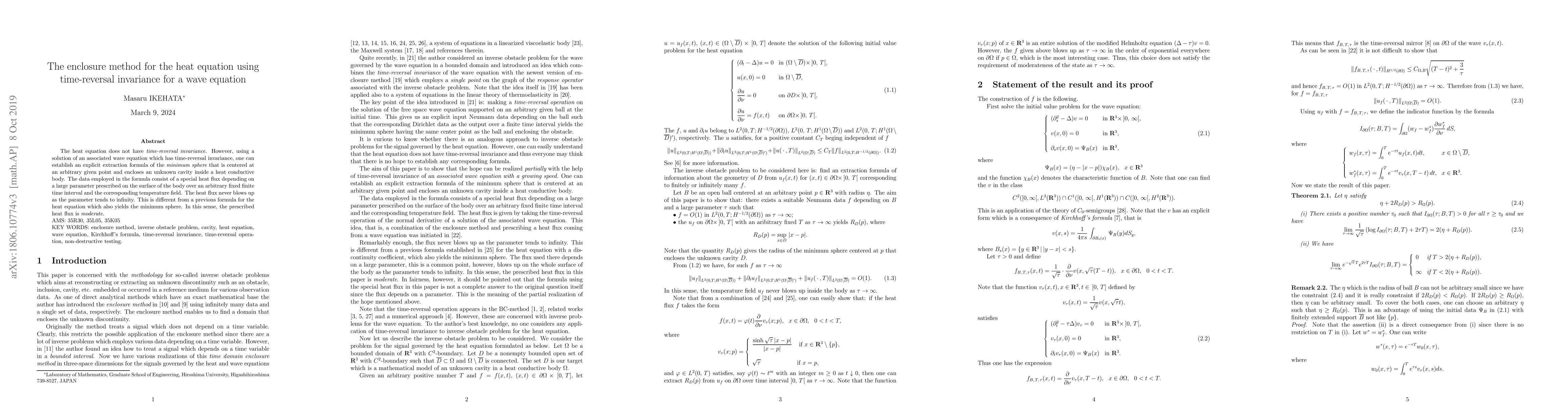 This paper proposes a method using time-reversal invariance from a wave equation to derive an explicit formula for the minimum sphere enclosing an unknown cavity in a heat conductive body. Unlike previous methods, the heat flux used in this formula remains bounded as a large parameter tends to infinity.