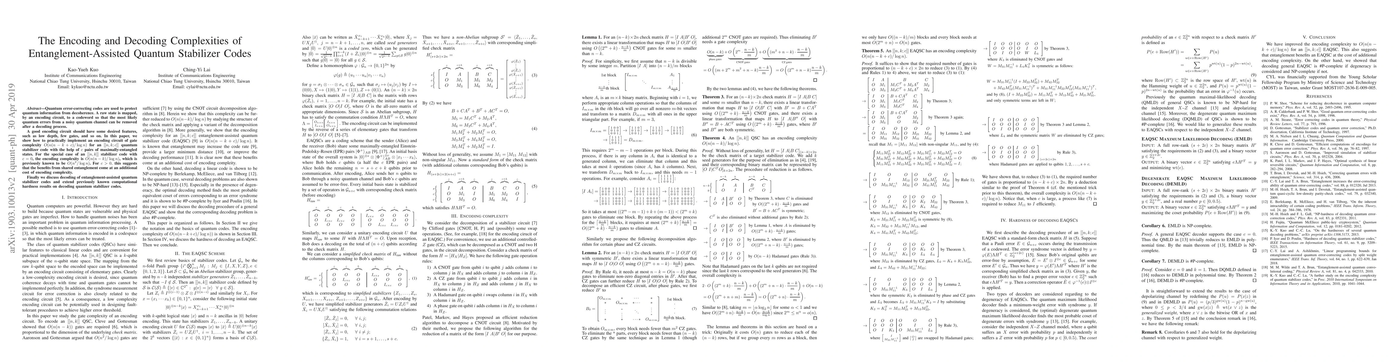Quantum error-correcting codes are used to protect quantum information from decoherence. A raw state is mapped, by an encoding circuit, to a codeword so that the most likely quantum errors from a noisy quantum channel can be removed after a decoding process. A good encoding circuit should have some desired features, such as low depth, few gates, and so on. In this paper, we show how to practically implement an encoding circuit of gate complexity $O(n(n-k+c)/\log n)$ for an $[[n,k;c]]$ quantum stabilizer code with the help of $c$ pairs of maximally-entangled states. For the special case of an $[[n,k]]$ stabilizer code with $c=0$, the encoding complexity is $O(n(n-k)/\log n)$, which is previously known to be $O(n^2/\log n)$. For $c>0,$ this suggests that the benefits from shared entanglement come at an additional cost of encoding complexity. Finally we discuss decoding of entanglement-assisted quantum stabilizer codes and extend previously known computational hardness results on decoding quantum stabilizer codes.