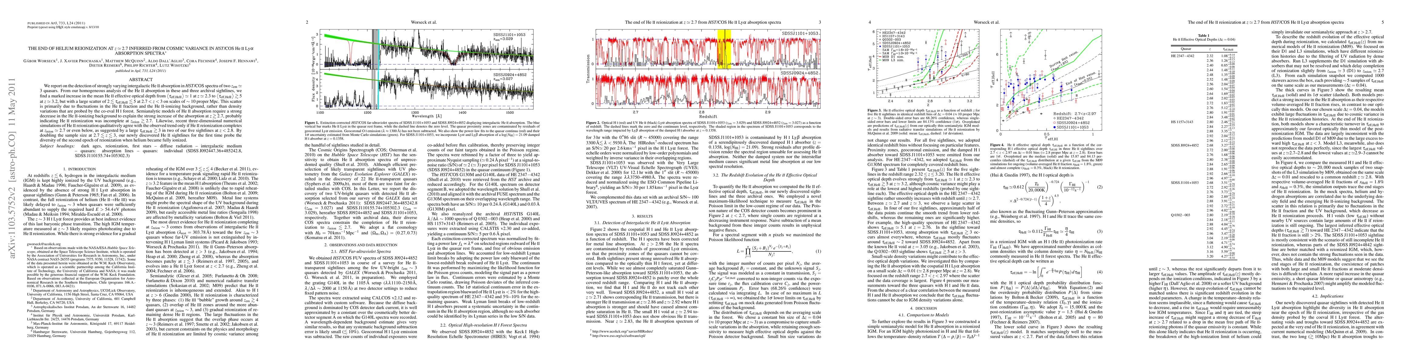 We report on the detection of strongly varying intergalactic HeII absorption in HST/COS spectra of two z~3 quasars. From our homogeneous analysis of the HeII absorption in these and three archival sightlines, we find a marked increase in the mean HeII effective optical depth from tau~1 at z~2.3 to tau>5 at z~3.2, but with a large scatter of 2< tau <5 at 2.7< z <3 on scales of ~10 proper Mpc. This scatter is primarily due to fluctuations in the HeII fraction and the HeII-ionizing background, rather than density variations that are probed by the co-eval HI forest. Semianalytic models of HeII absorption require a strong decrease in the HeII-ionizing background to explain the strong increase of the absorption at z>2.7, probably indicating HeII reionization was incomplete at z>2.7. Likewise, recent three-dimensional numerical simulations of HeII reionization qualitatively agree with the observed trend only if HeII reionization completes at z=2.7 or even below, as suggested by a large tau>3 in two of our five sightlines at z<2.8. By doubling the sample size at 2.7< z <3, our newly discovered HeII sightlines for the first time probe the diversity of the second epoch of reionization when helium became fully ionized.