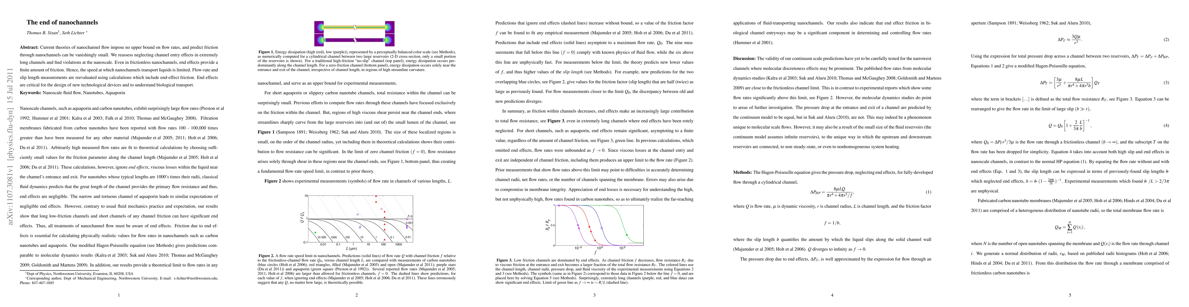 This paper reassesses nanochannel flow theories, revealing that end effects impose a finite friction limit, contradicting previous predictions of unlimited flow rates and negligible friction. The findings emphasize the importance of considering end effects for the design of nanotechnological devices and biological transport systems.
