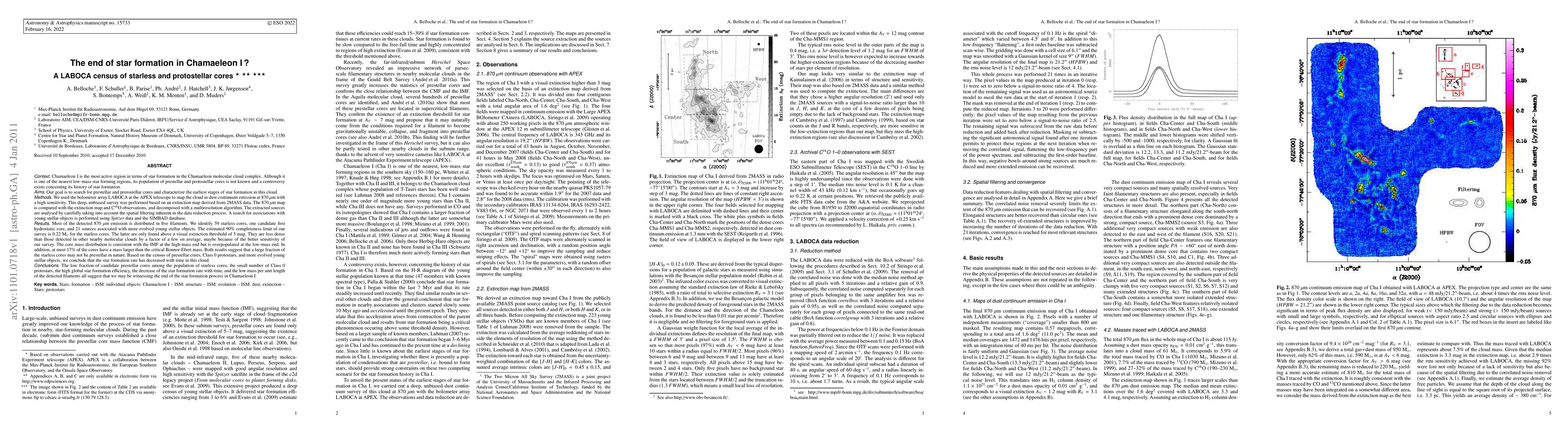 This study uses LABOCA at APEX to map the Chamaeleon I molecular cloud, identifying 59 starless cores and 21 YSOs, suggesting a decline in star formation activity. The low fraction of prestellar cores and decrease in star formation rate indicate the potential end of star formation in this region.