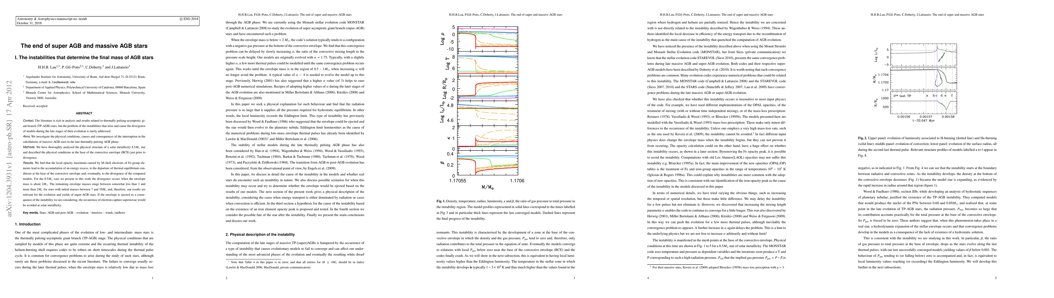 This paper investigates the instabilities causing the divergence of models for massive asymptotic giant branch (AGB) stars during their late thermally-pulsing phase. It finds that local opacity maxima due to Fe-group elements lead to energy accumulation, disrupting thermal equilibrium and causing model divergence, particularly when the envelope mass is around 2 solar masses.
