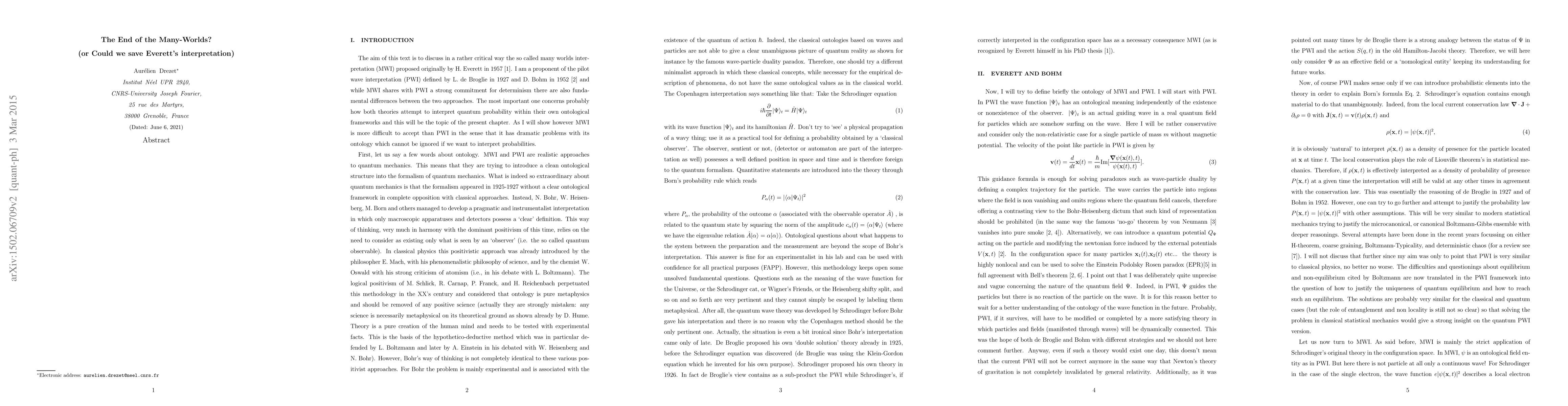 This is a manuscript to be published as a book chapter. The text summarizes some of my critics concerning Everett's theory as seen from the perspective of a Bohmian. This is the second draft and comments are still welcome.