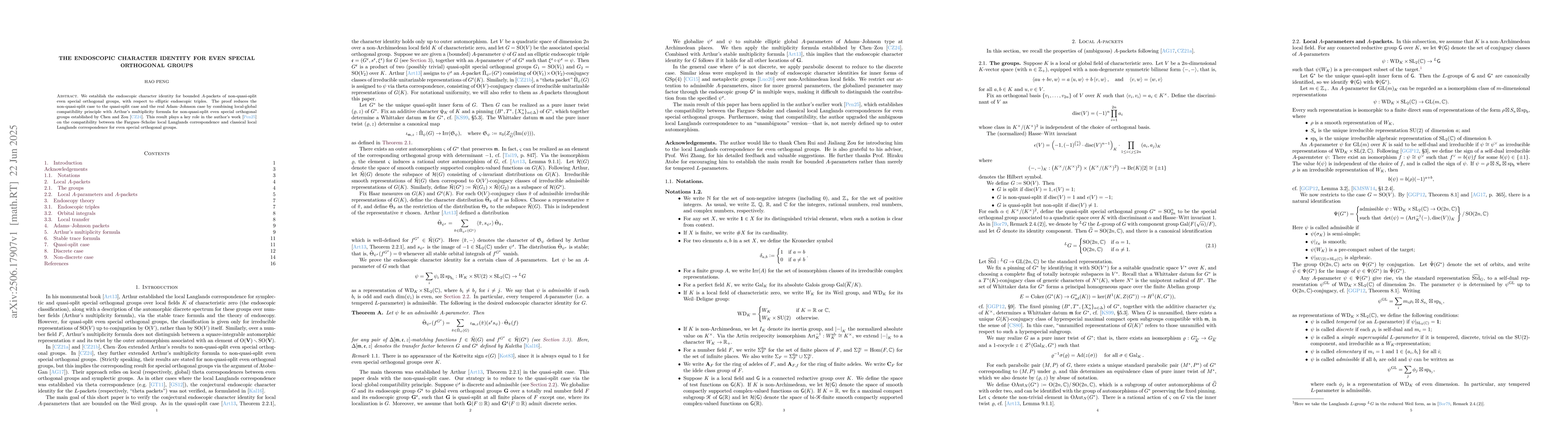 We establish the endoscopic character identity for bounded $A$-packets of non-quasi-split even special orthogonal groups, with respect to elliptic endoscopic triples. The proof reduces the non-quasi-split case to the quasi-split case and the real Adam--Johnson case by combining local-global compatibility principle with Arthur's multiplicity formula for non-quasi-split even special orthogonal groups established by Chen and Zou in arXiv:2103.07956. This result plays a key role in the author's work arXiv:2503.04623 on the compatibility between the Fargues--Scholze local Langlands correspondence and classical local Langlands correspondence for even special orthogonal groups.