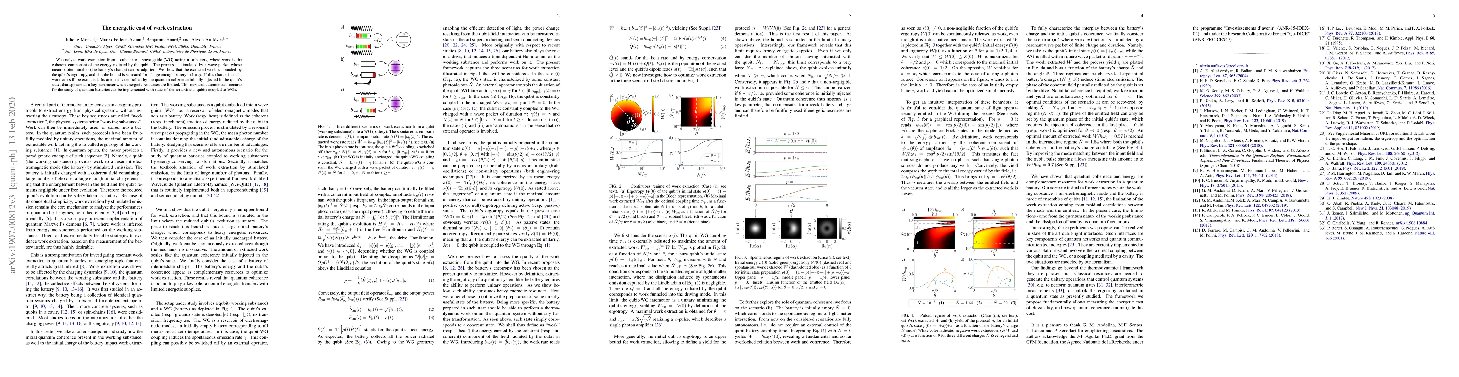 Researchers developed a method to extract work from a qubit into a wave guide, which acts as a battery, using a controlled amount of photon energy. The extracted work is limited by the qubit's ergotropy and can be increased by adjusting the photon number injected into the qubit.