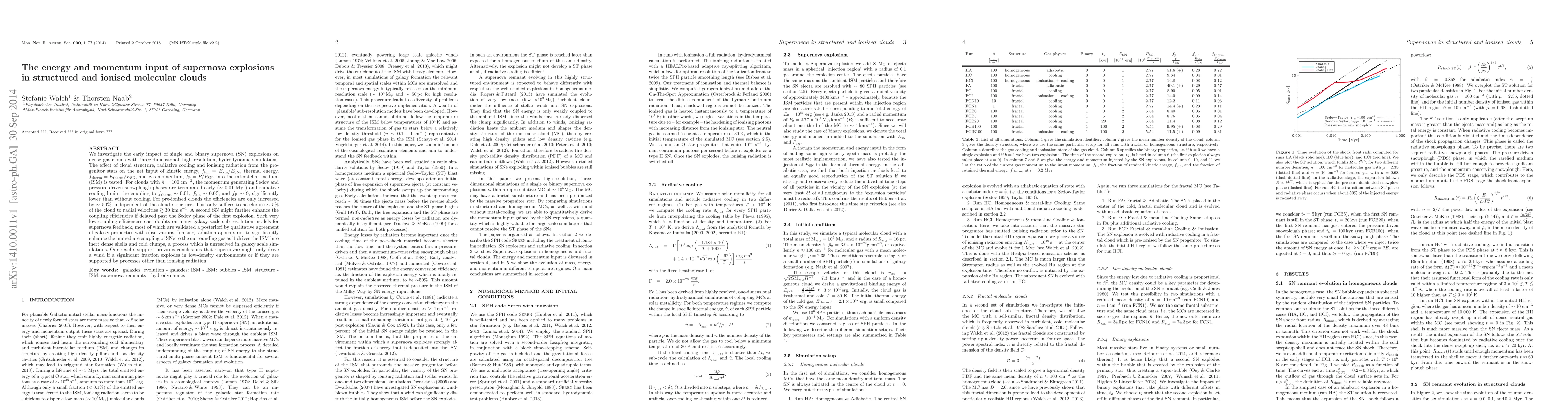 We investigate the early impact of single and binary supernova (SN) explosions on dense gas clouds with three-dimensional, high-resolution, hydrodynamic simulations. The effect of cloud structure, radiative cooling, and ionising radiation from the progenitor stars on the net input of kinetic energy, f_kin=E_kin/E_SN, thermal energy, f_therm=E_therm/E_SN, and gas momentum f_P=P/P_SN to the interstellar medium (ISM) is tested. For clouds with n=100 cm^{-3}, the momentum generating Sedov and pressure-driven snowplough phases are terminated early (~ 0.01 Myr) and radiative cooling limits the coupling to f_therm ~ 0.01, f_kin ~ 0.05, and f_P ~ 9, significantly lower than for the case without cooling. For pre-ionised clouds these numbers are only increased by ~ 50%, independent of the cloud structure. This only suffices to accelerate ~ 5% of the cloud to radial velocities >30km/s. A second SN might further enhance the coupling efficiencies if delayed past the Sedov phase of the first explosion. Such very low coupling efficiencies cast doubts on many galaxy-scale sub-resolution models for supernova feedback, most of which are validated a posteriori by qualitative agreement of galaxy properties with observations. Ionising radiation appears not to significantly enhance the immediate coupling of SNe to the surrounding gas as it drives the ISM into inert dense shells and cold clumps, a process which is unresolved in galaxy scale simulations. Our results support previous conclusions that supernovae might only drive a wind if a significant fraction explodes in low-density environments or if they are supported by processes other than ionising radiation.
