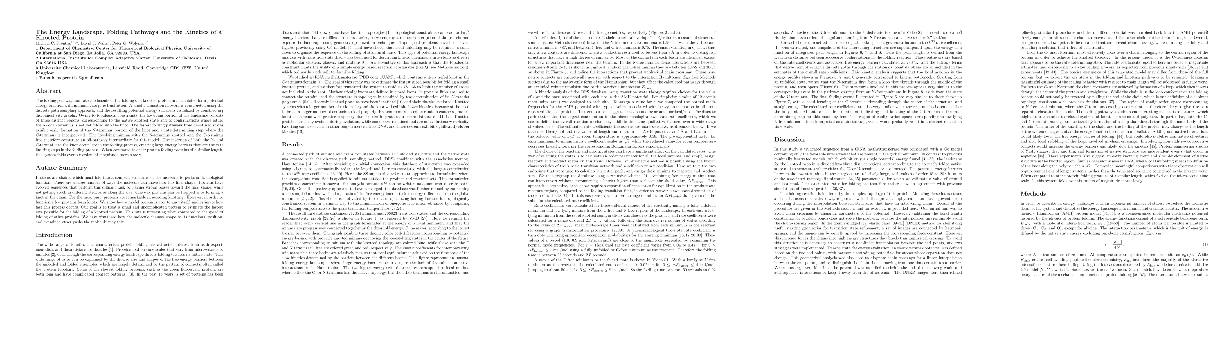 This study investigates the folding pathway and kinetics of a knotted protein using a potential energy function with minimal frustration. The kinetic transition network reveals that the fastest folding involves early formation of the N-terminus followed by a rate-determining step for C-terminus incorporation, resulting in a six orders of magnitude slower folding rate compared to similar proteins.