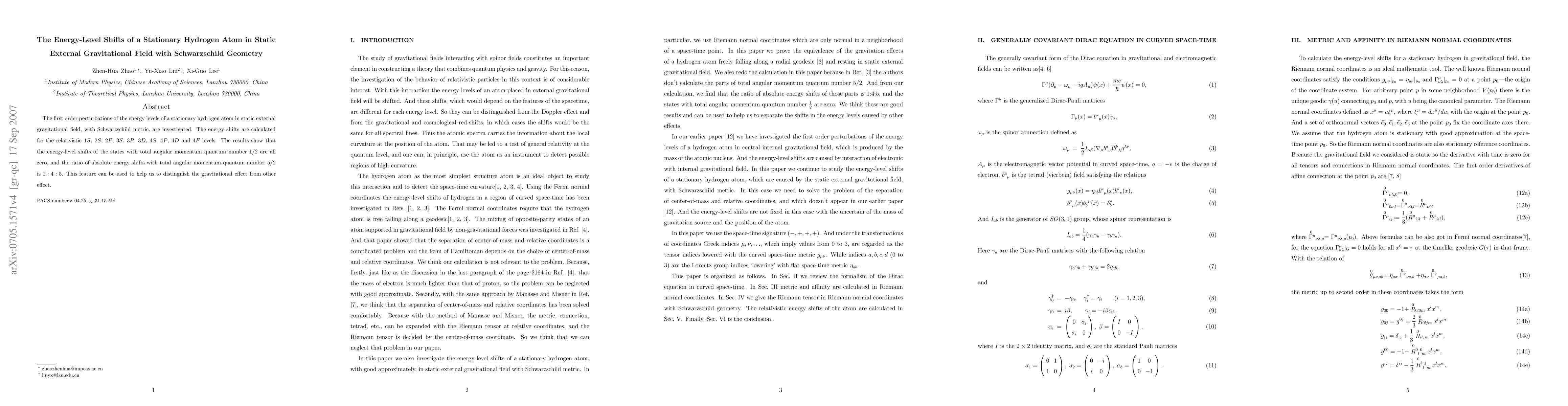 This paper investigates energy shifts in a stationary hydrogen atom in a static external gravitational field with Schwarzschild geometry, revealing distinct features that can help distinguish gravitational effects from others.
