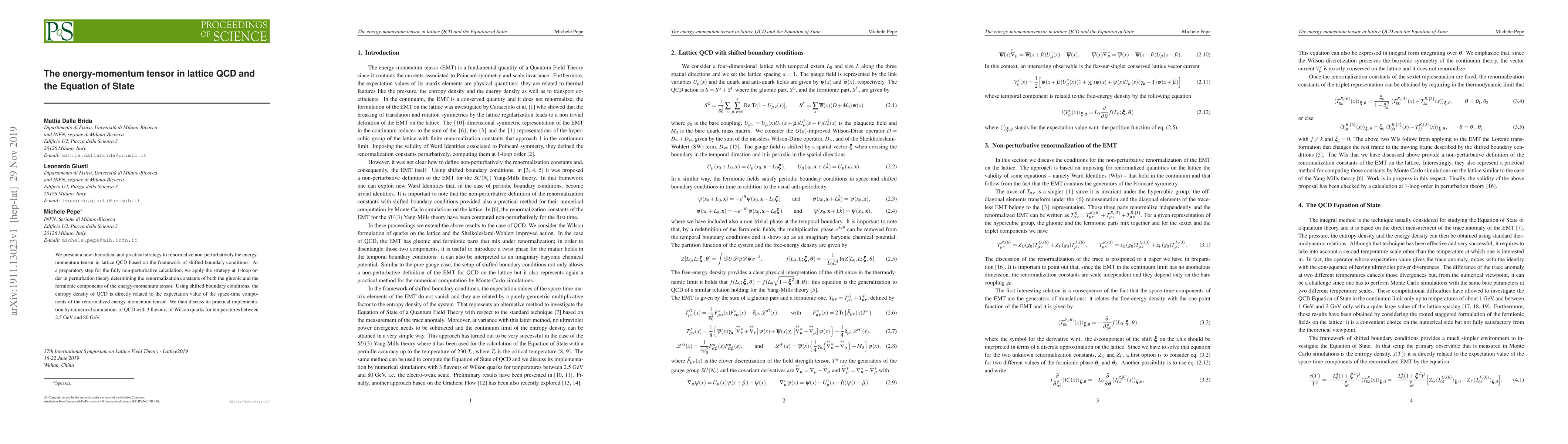 This paper introduces a new method to non-perturbatively renormalize the energy-momentum tensor in lattice QCD using shifted boundary conditions, and applies it at 1-loop order to determine renormalization constants. The study also explores the entropy density relation to the renormalized tensor and discusses its implementation in numerical QCD simulations.