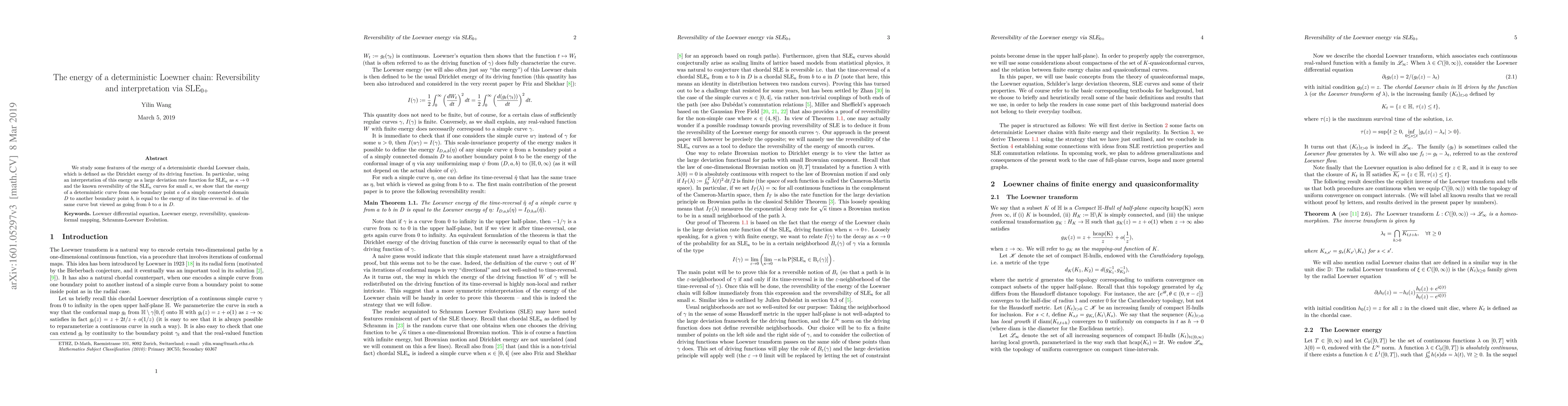 We study some features of the energy of a deterministic chordal Loewner chain, which is defined as the Dirichlet energy of its driving function. In particular, using an interpretation of this energy as a large deviation rate function for SLE$_\kappa$ as $\kappa$ tends to 0 and the known reversibility of the SLE$_\kappa$ curves for small $\kappa$, we show that the energy of a deterministic curve from one boundary point A of a simply connected domain D to another boundary point B, is equal to the energy of its time-reversal ie. of the same curve but viewed as going from B to A in D.