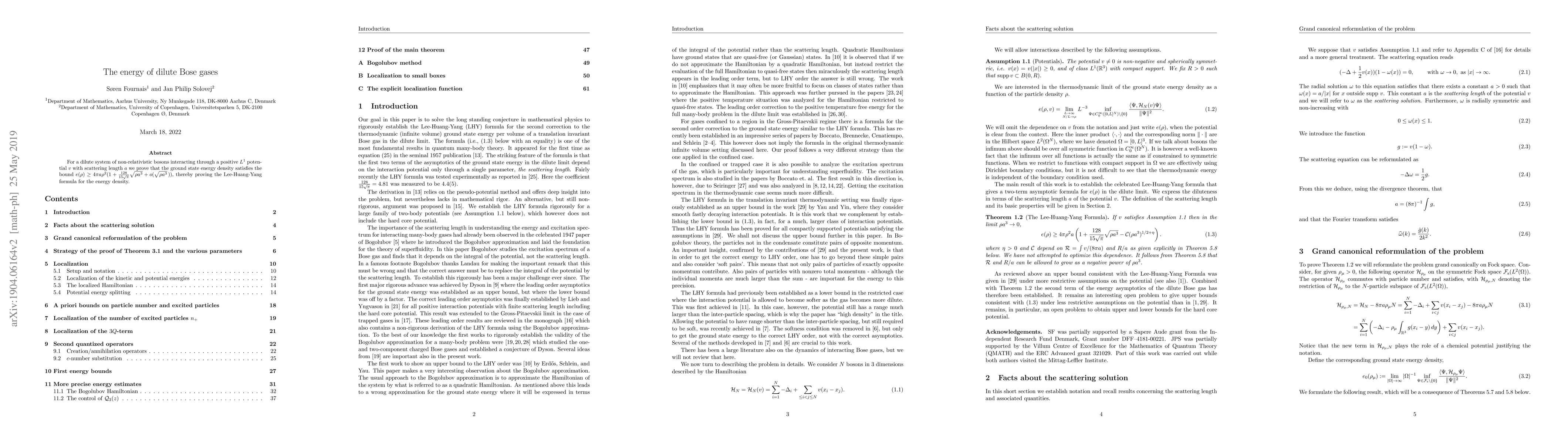 For a dilute system of non-relativistic bosons interacting through a positive $L^1$ potential $v$ with scattering length $a$ we prove that the ground state energy density satisfies the bound $e(\rho) \geq 4\pi a \rho^2 (1+ \frac{128}{15\sqrt{\pi}} \sqrt{\rho a^3} +o(\sqrt{\rho a^3}\,))$, thereby proving the Lee-Huang-Yang formula for the energy density.