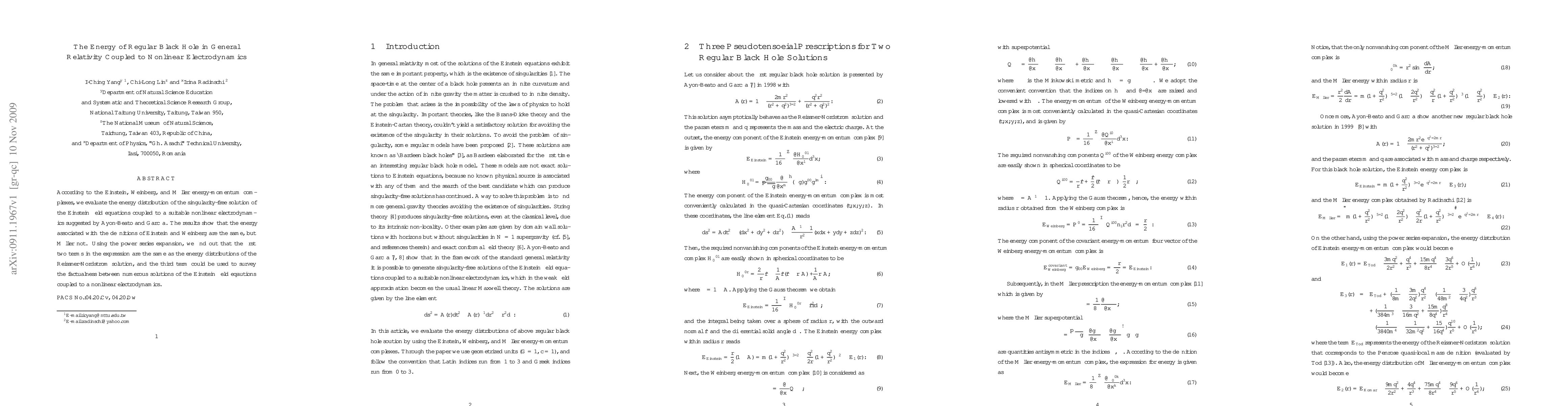 According to the Einstein, Weinberg, and M{\o}ller energy-momentum complexes, we evaluate the energy distribution of the singularity-free solution of the Einstein field equations coupled to a suitable nonlinear electrodynamics suggested by Ay\'{o}n-Beato and Garc\'{i}a. The results show that the energy associated with the definitions of Einstein and Weinberg are the same, but M{\o}ller not. Using the power series expansion, we find out that the first two terms in the expression are the same as the energy distributions of the Reissner-Nordstr\"{o}m solution, and the third term could be used to survey the factualness between numerous solutions of the Einstein field eqautions coupled to a nonlinear electrodynamics.